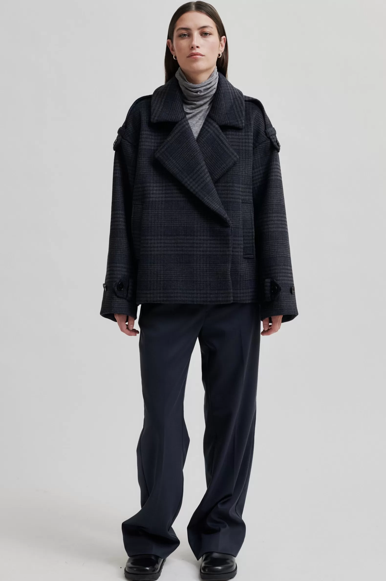Second Female checked jacket. Made in thick, soft wool blend with checked pattern. Featuring wide notch lapel and concea…