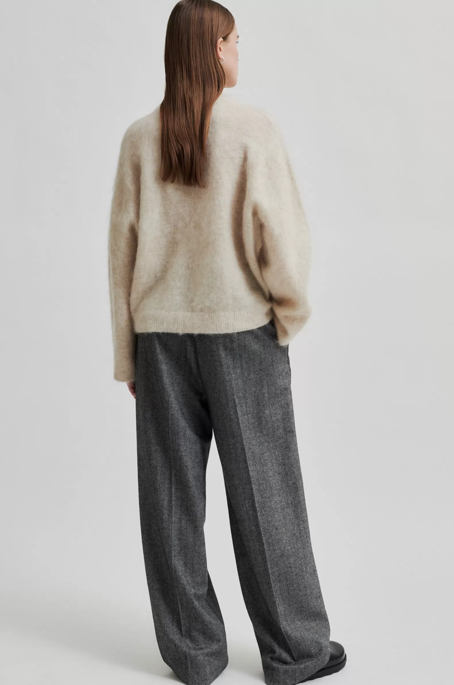 Second Female pullover with knitted pattern. Made in soft and stretchy merino blend with fluffy quality and knitted flow…