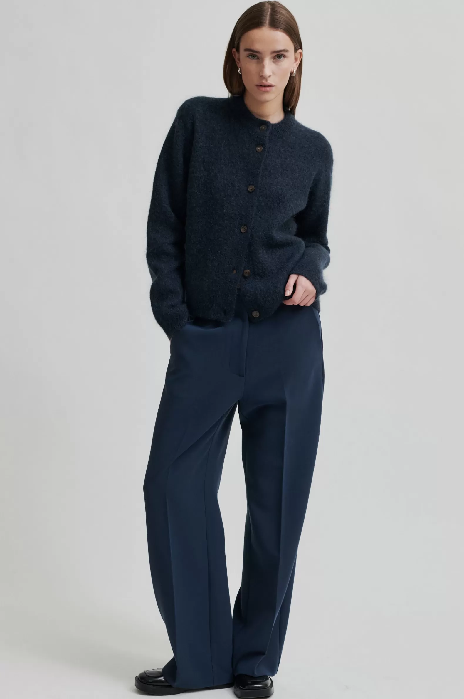 Second Female classic cardigan. Made in a soft and stretchy ribbed mohair-wool blend with slightly fluffy texture. Featu…