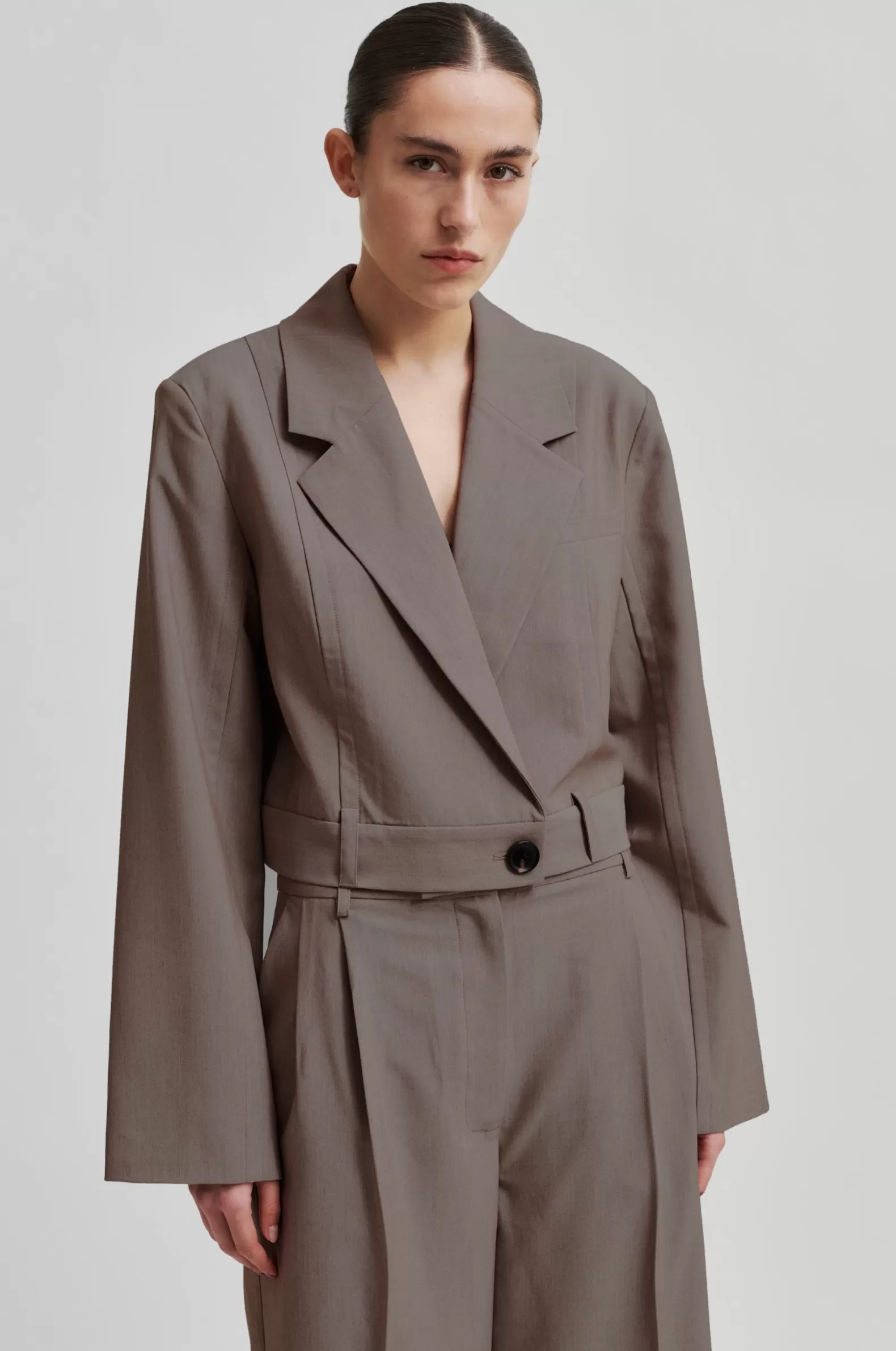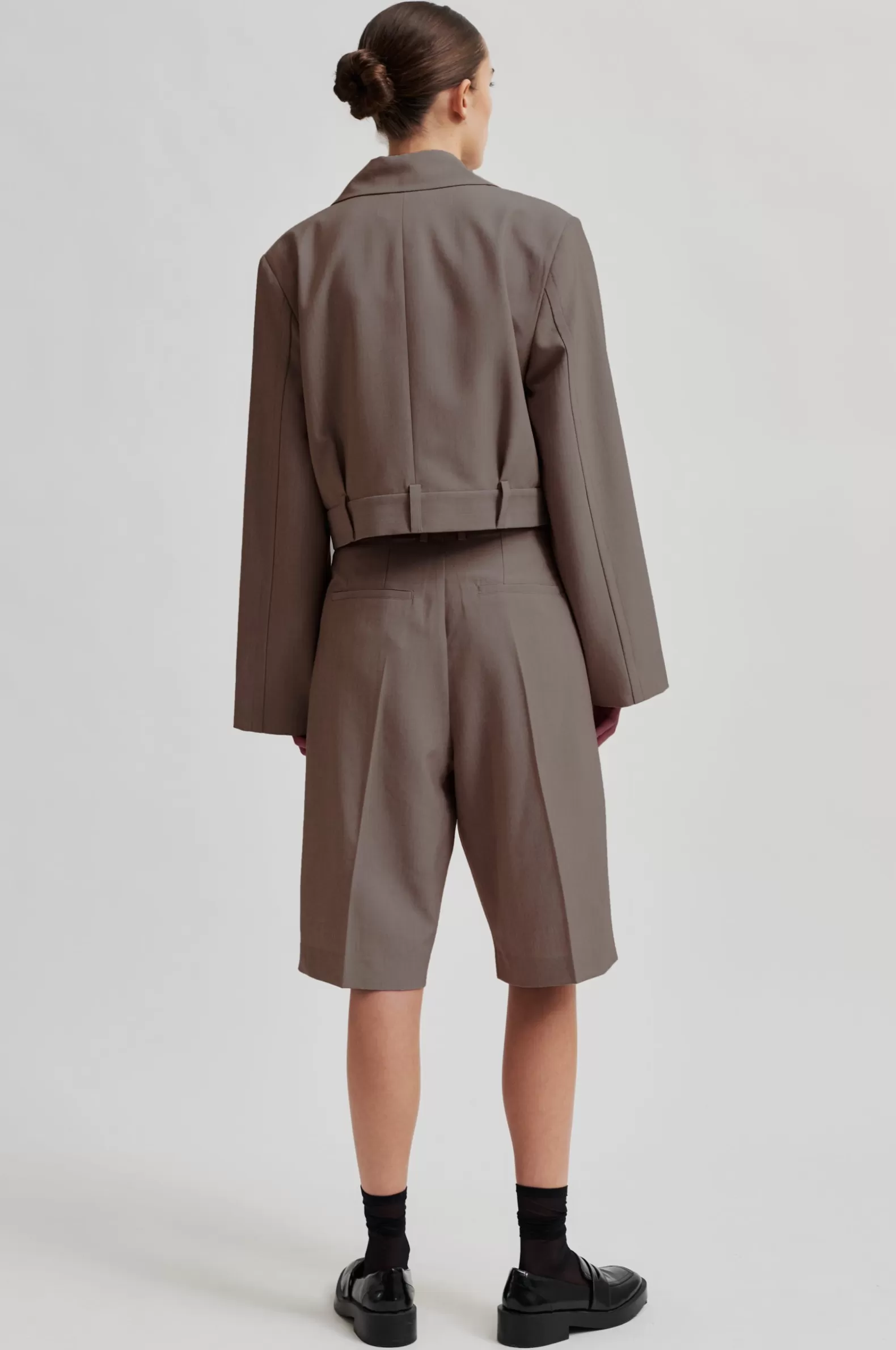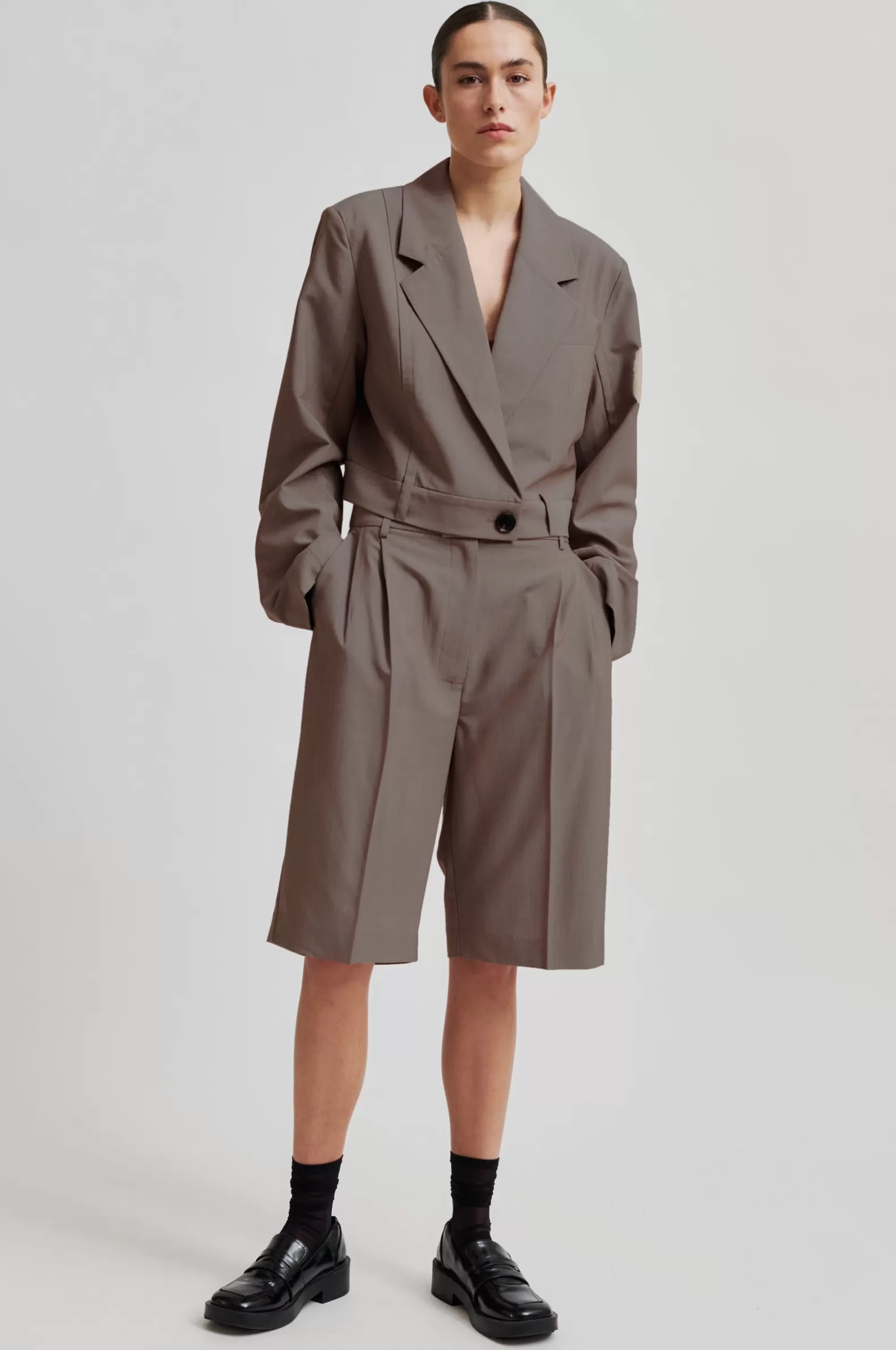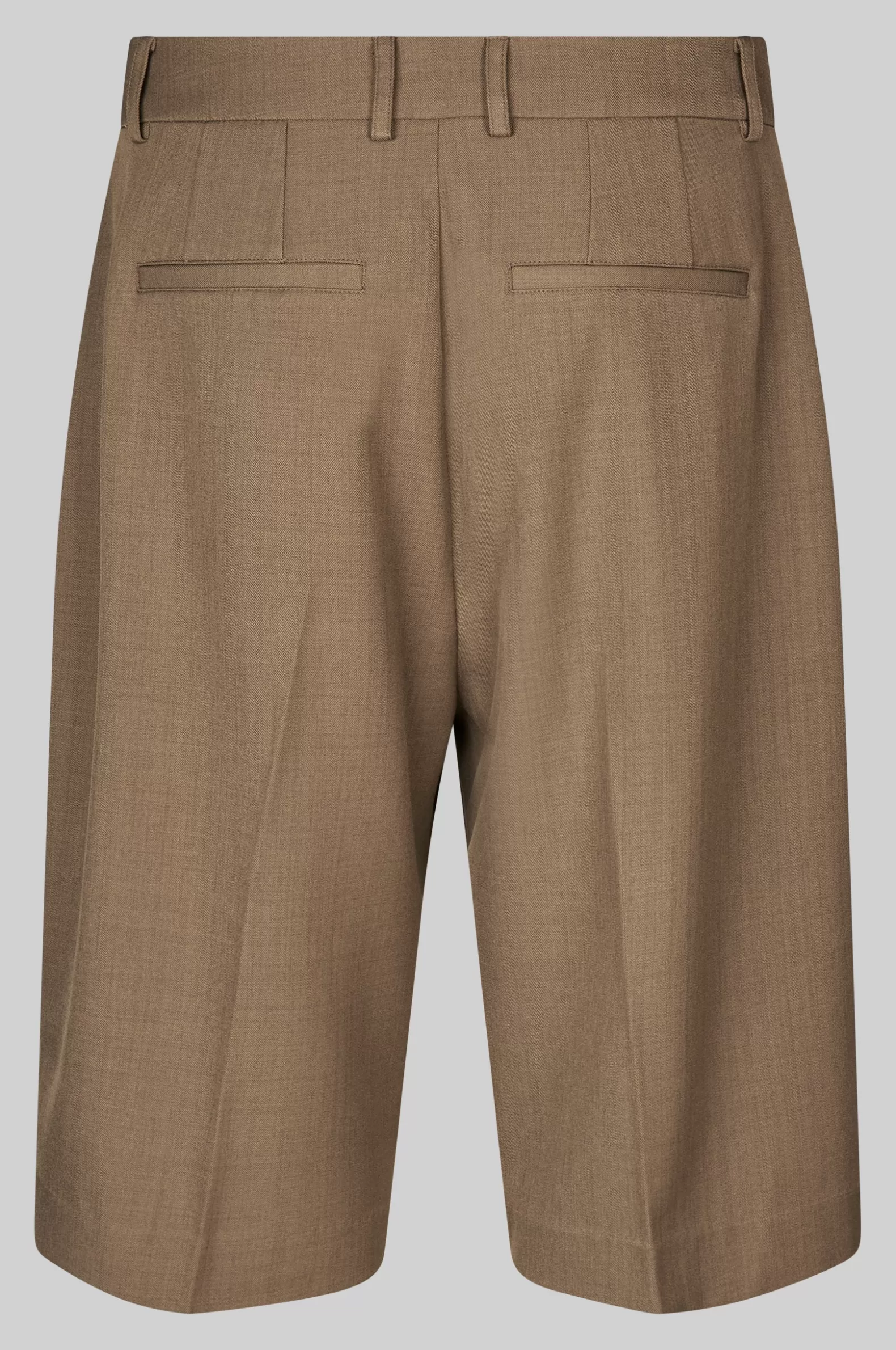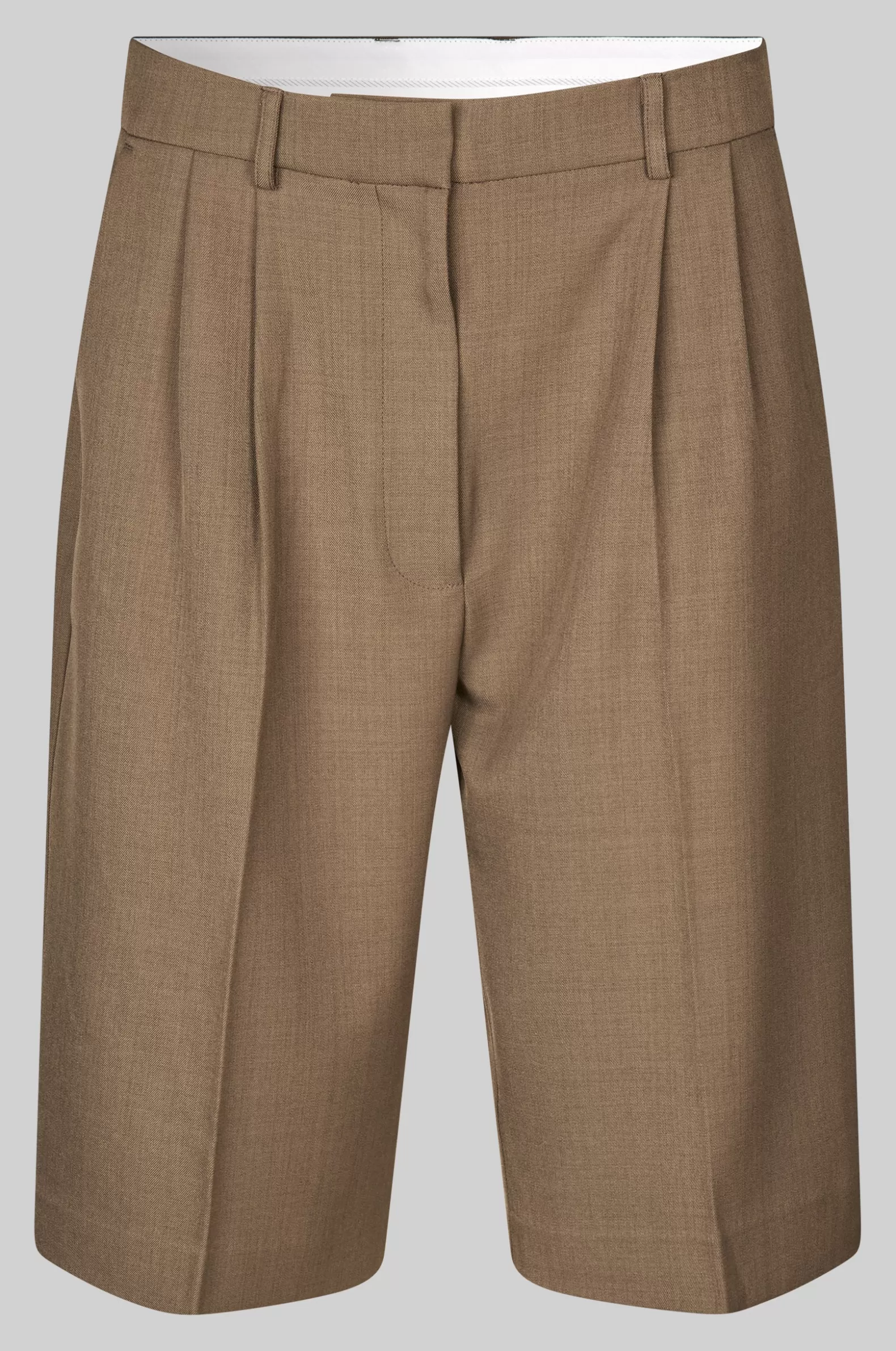 Second Female suit shorts. Made in a soft and smooth fabric blend with drapy quality. Featuring a concealed zip, hook and button fastening at the front. Two slanted pockets at the front and two decorative pockets at the back. Pleats at waistband. Mid waist with straight leg.
