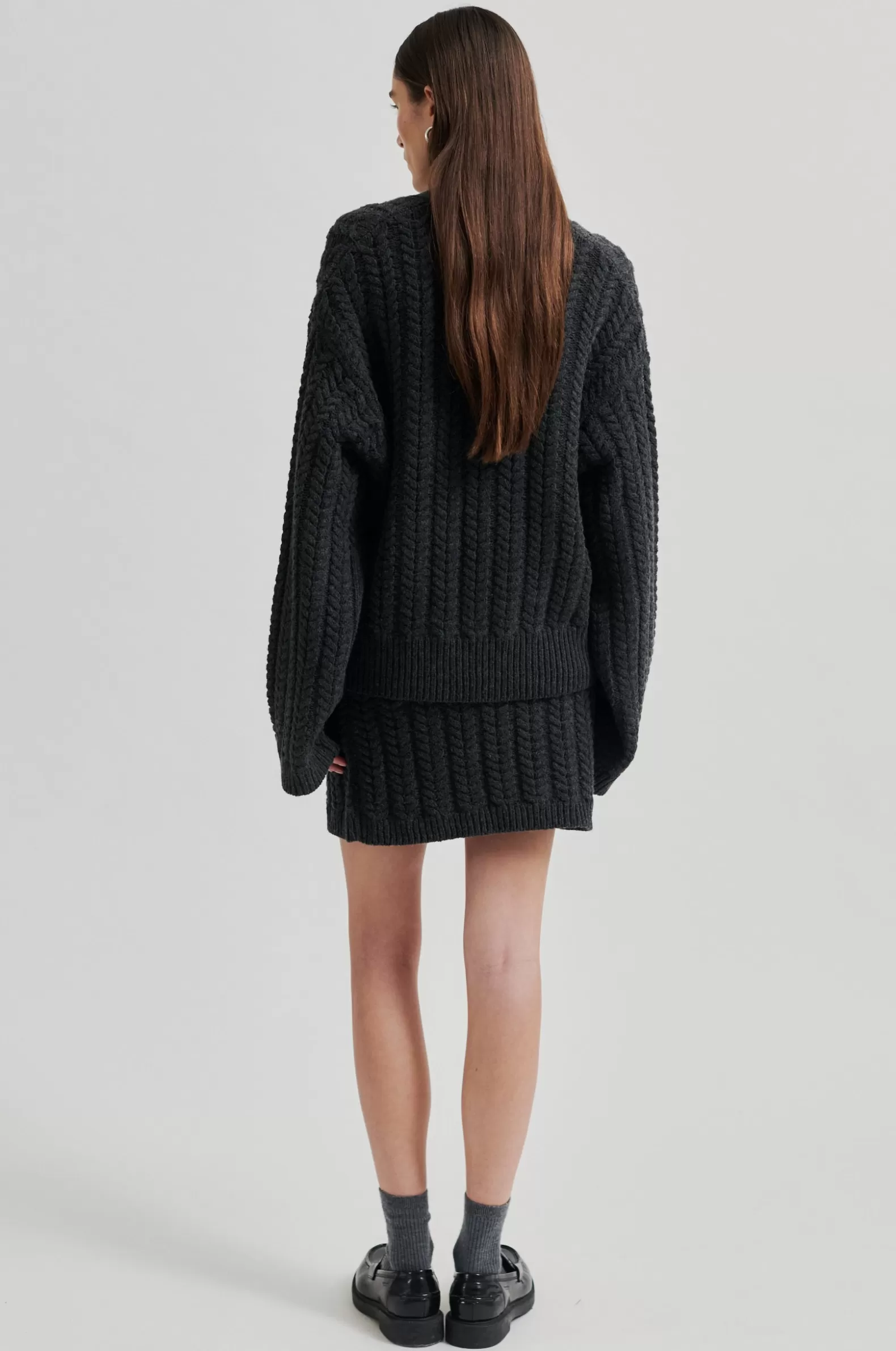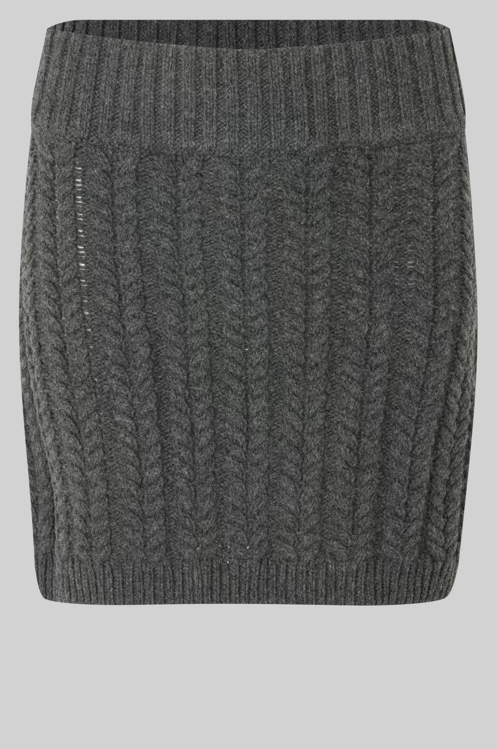 Second Female cable-knit skirt. The skirt is made in a soft merino-cotton blend with cable knit pattern. Featuring a covered elasticated waist and ribbed hem. Slim fit.