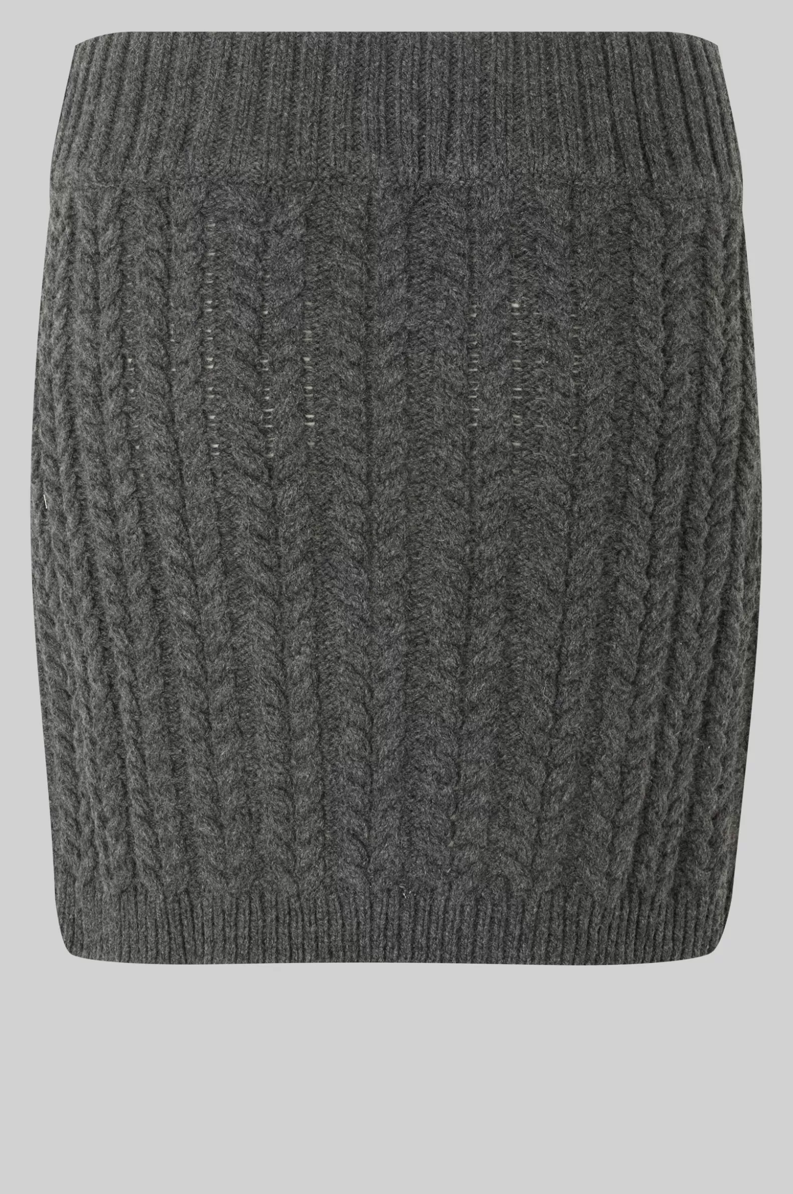 Second Female cable-knit skirt. The skirt is made in a soft merino-cotton blend with cable knit pattern. Featuring a cov…