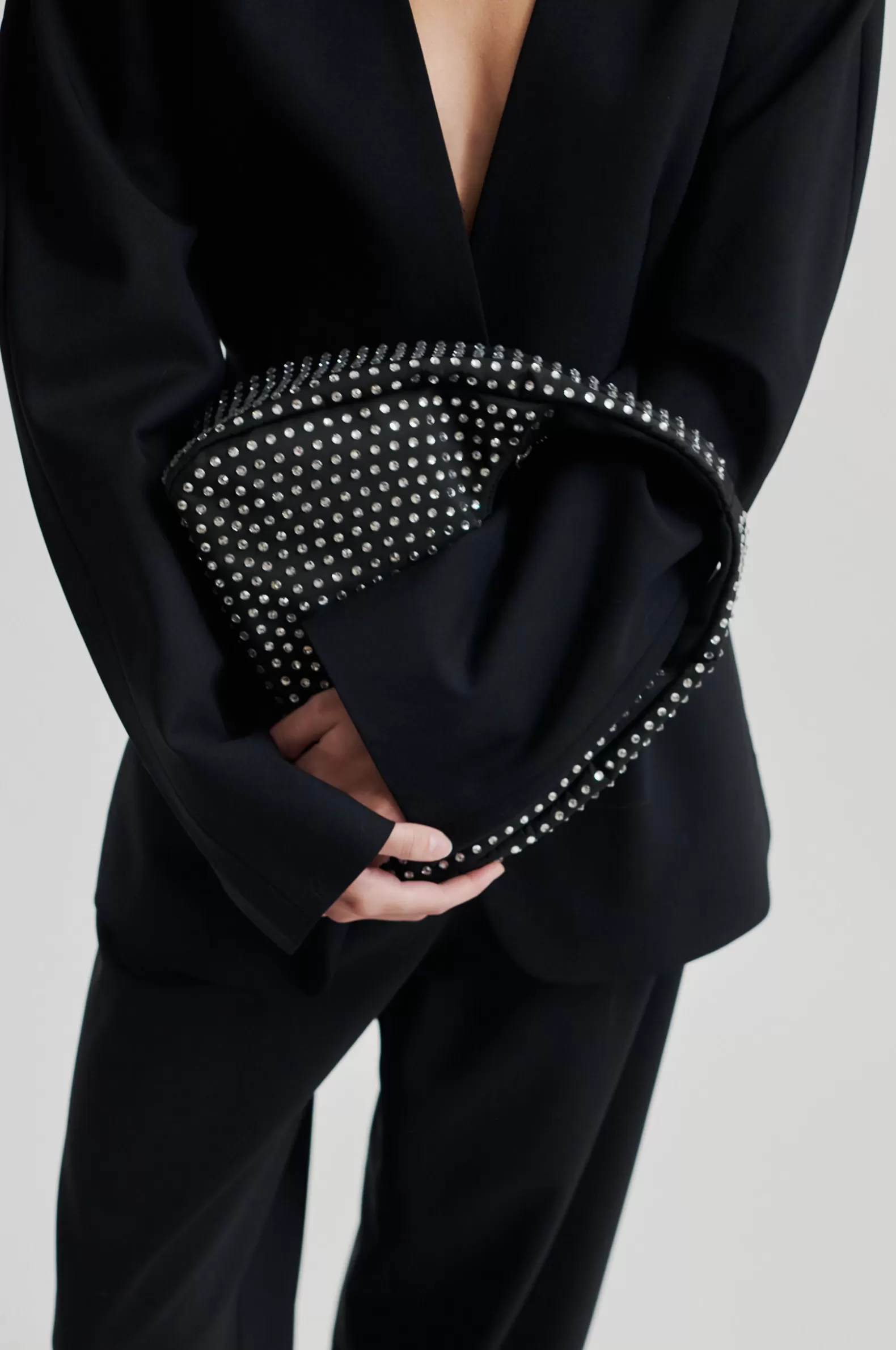 Second Female rhinestone bag. The bag is covered in sparkly rhinestones on a contrast background. Featuring an opening a…