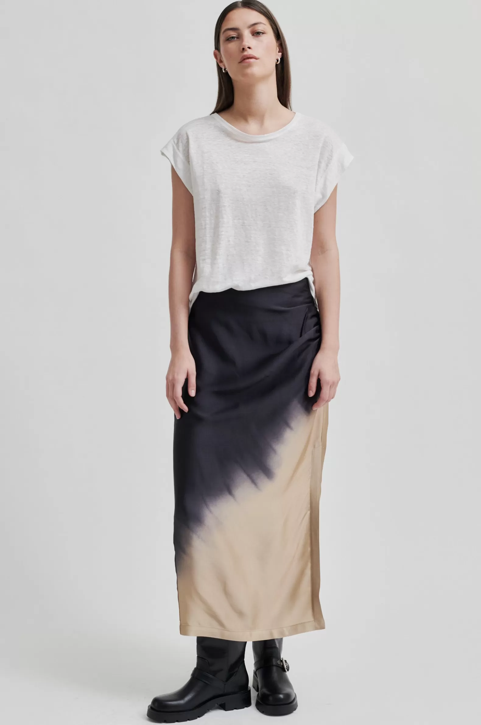 Second Female two-tone skirt. Made in soft and smooth viscose with drapy quality. Featuring a concealed zip fastening at…