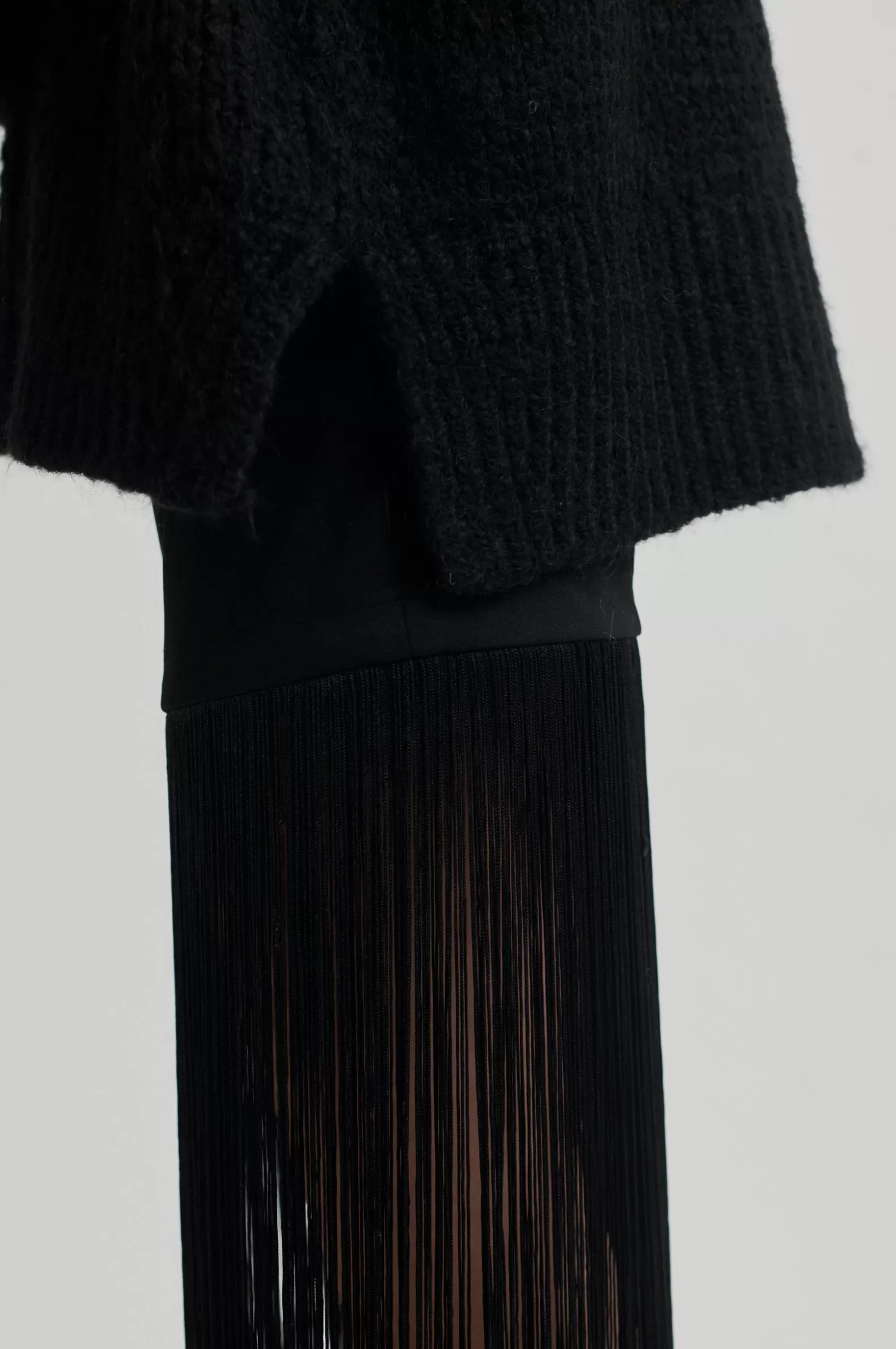 Second Female ribbed pullover with collar. The pullover is made in a soft and thick yarn blend with cable knitted structure. Featuring a round neck, dropped shoulders and long sleeves with wide cuffs. Ribbed neck, cuffs and bottom hem. Wide and slouchy that makes it relaxed and comfy to wear.
