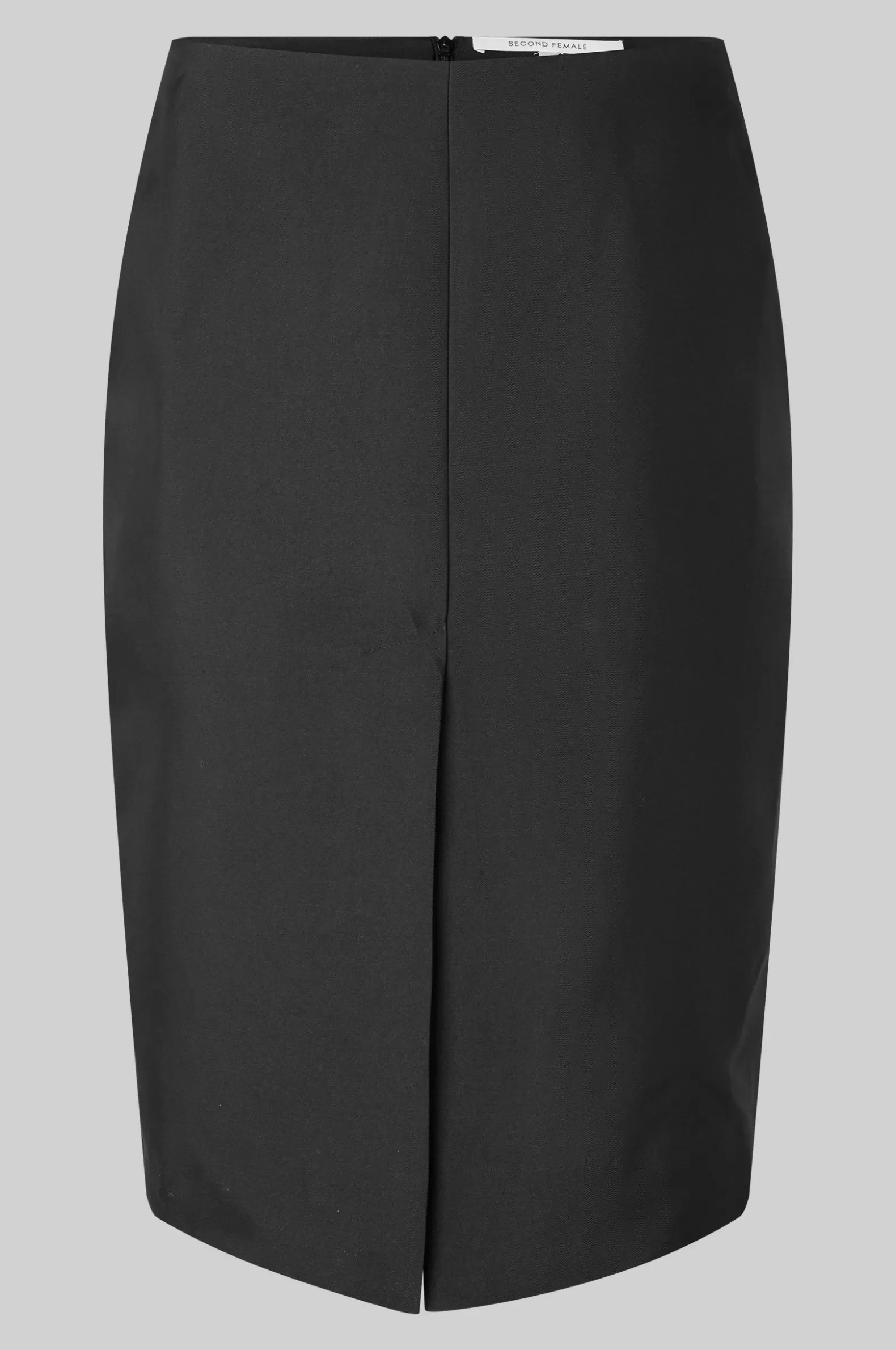 Second Female classic pencil skirt. The skirt is made in smooth fabric with a lustrous quality. Featuring a concealed zip fastening at the back and two pockets. Deep slit at front and fitted seams at the aback. Slim fit.