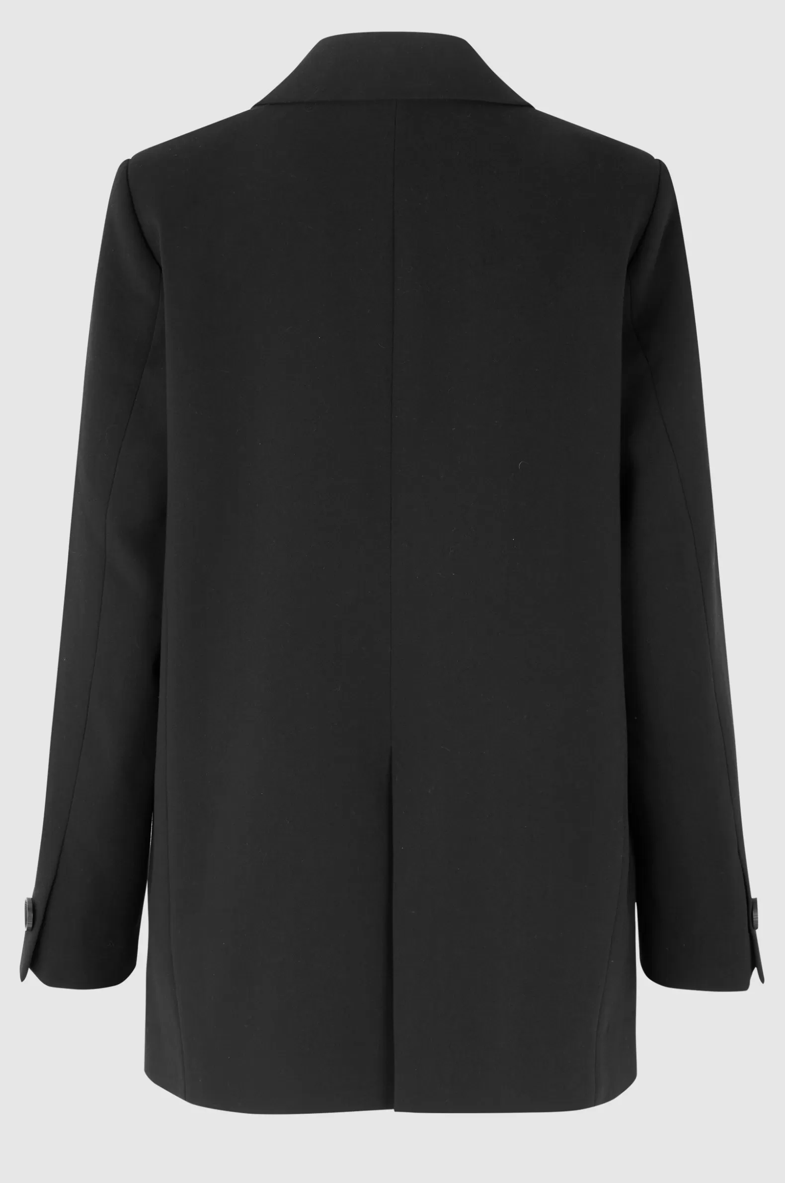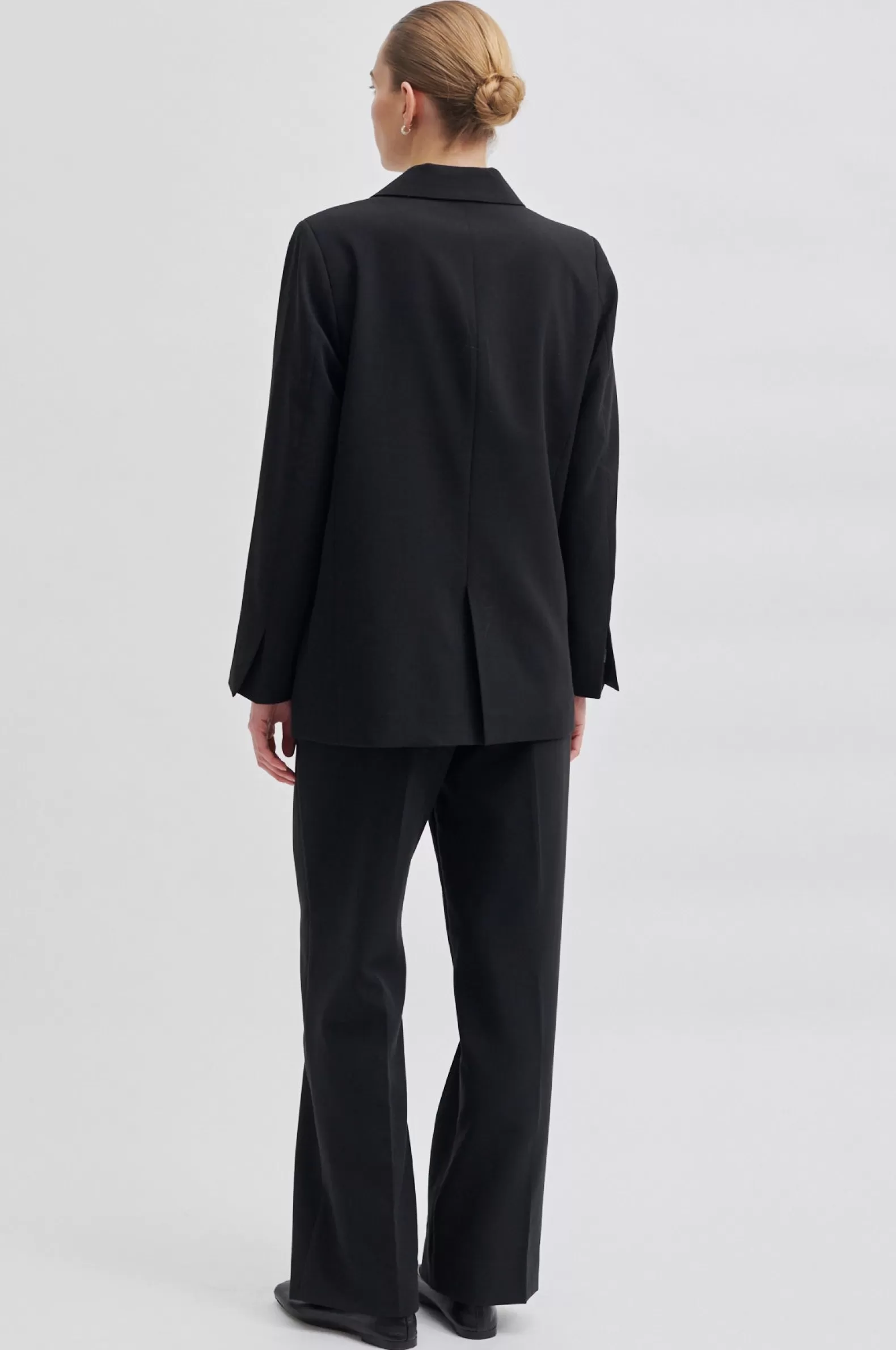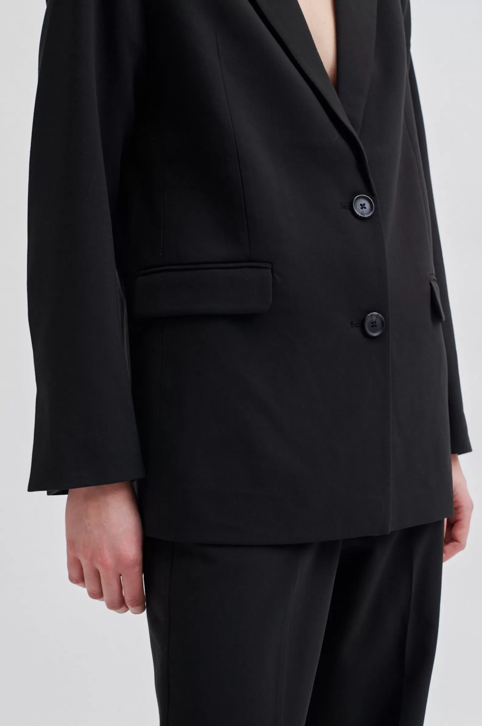 Second Female classic blazer. Made in light, smooth fabric. Featuring a notch lapel and two-button fastening at the front. Padded shoulders and long sleeves with slits at cuffs. Two flap pockets and single slit at back. Fully lined. Loose and relaxed fit.