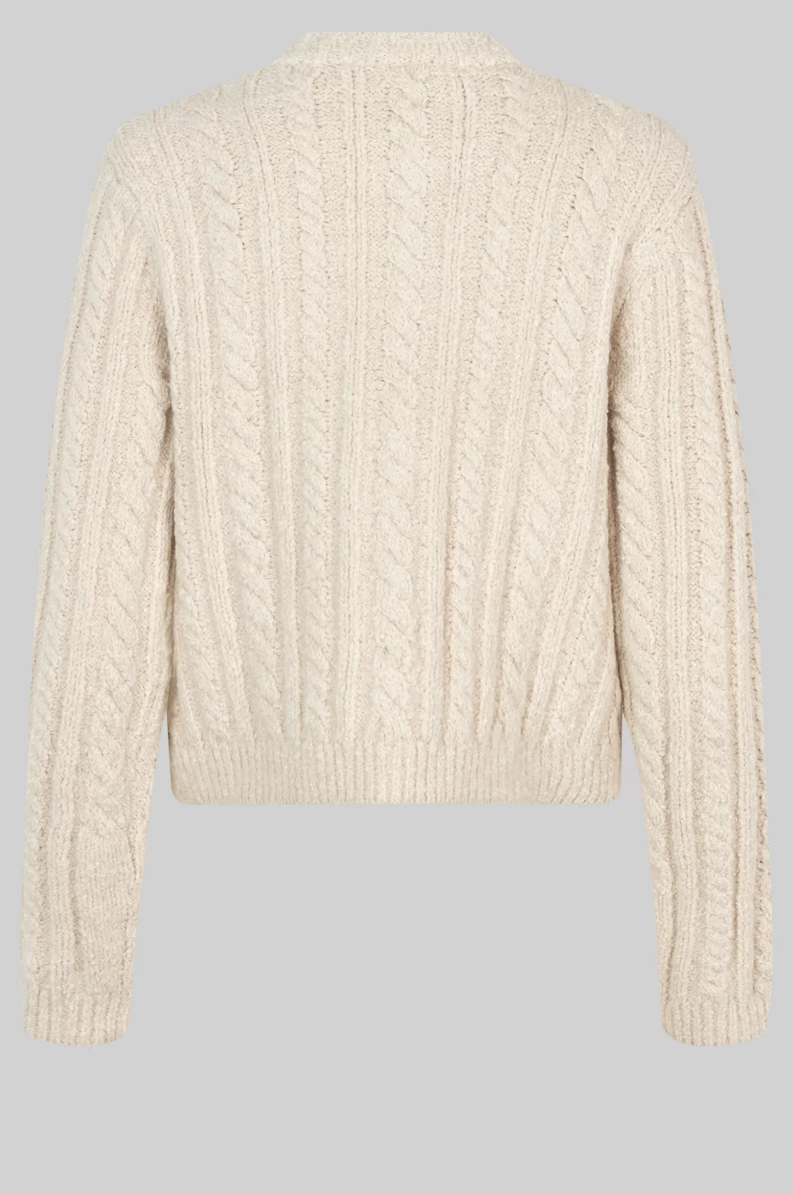 Second Female cardigan with button details. The cardigan is made in a soft and stretchy cotton blend with cable knit str…