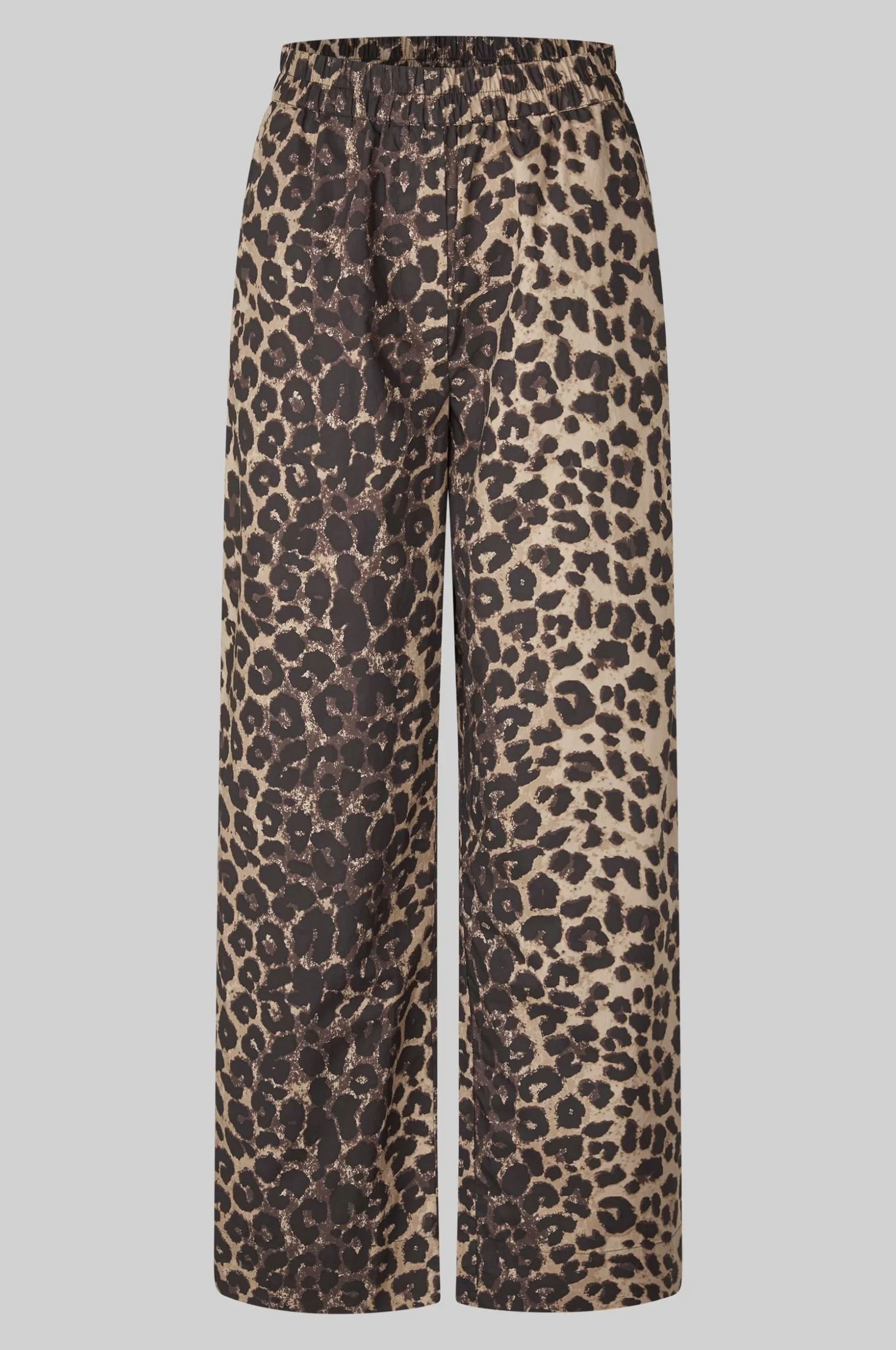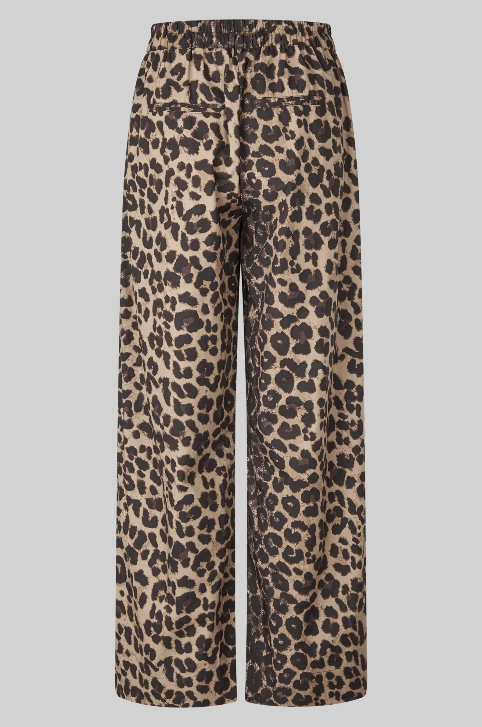 Second Female leopard trousers. Made in light and smooth cotton with all-over leopard pattern. Featuring a covered elasticated waistband. Two side pockets and two pockets at the back. Regular waist fit with straight leg.