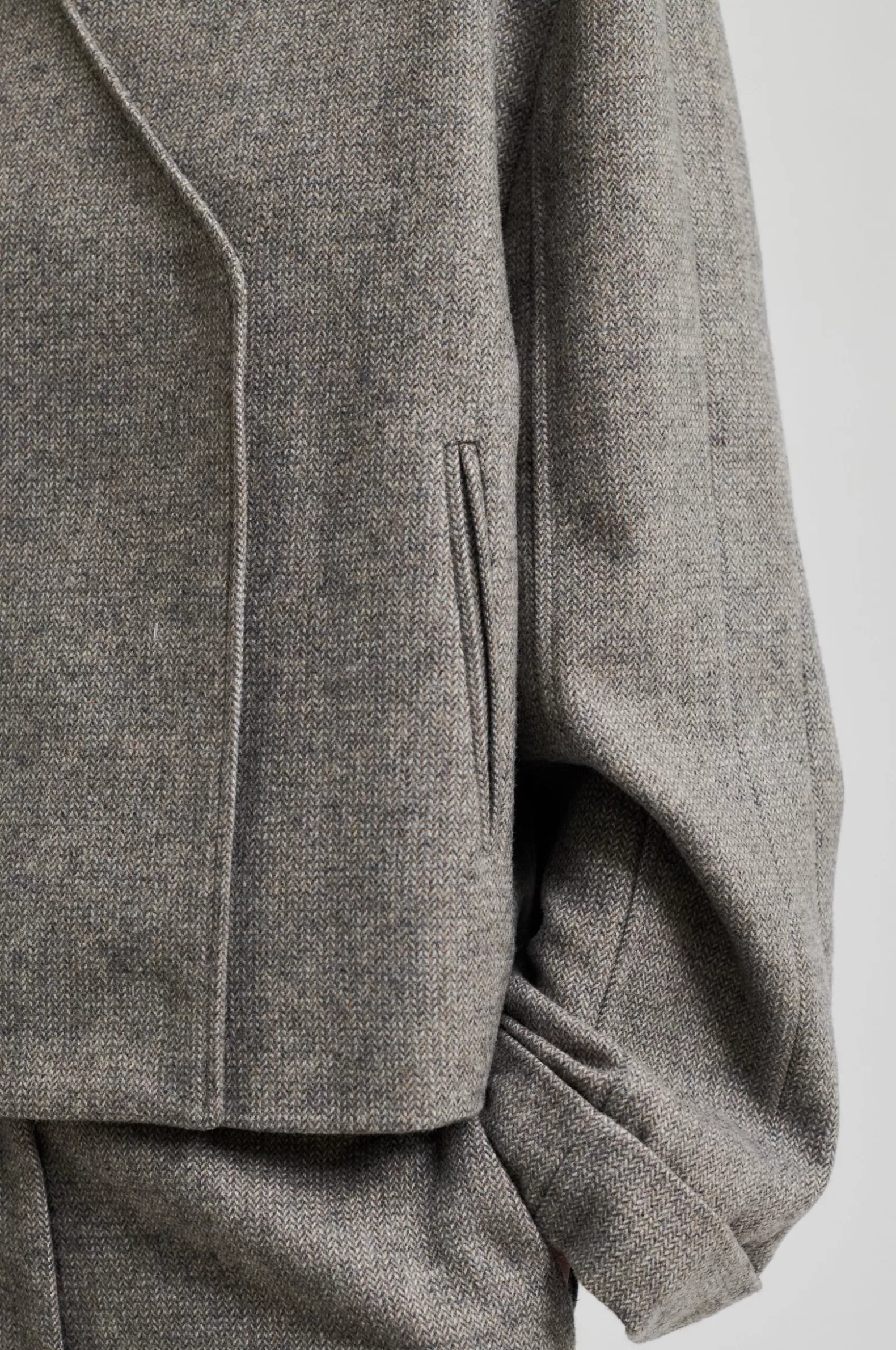 Second Female crossover blazer. Made in a light wool blend with miniature herringbone pattern. Featuring crossover neckl…