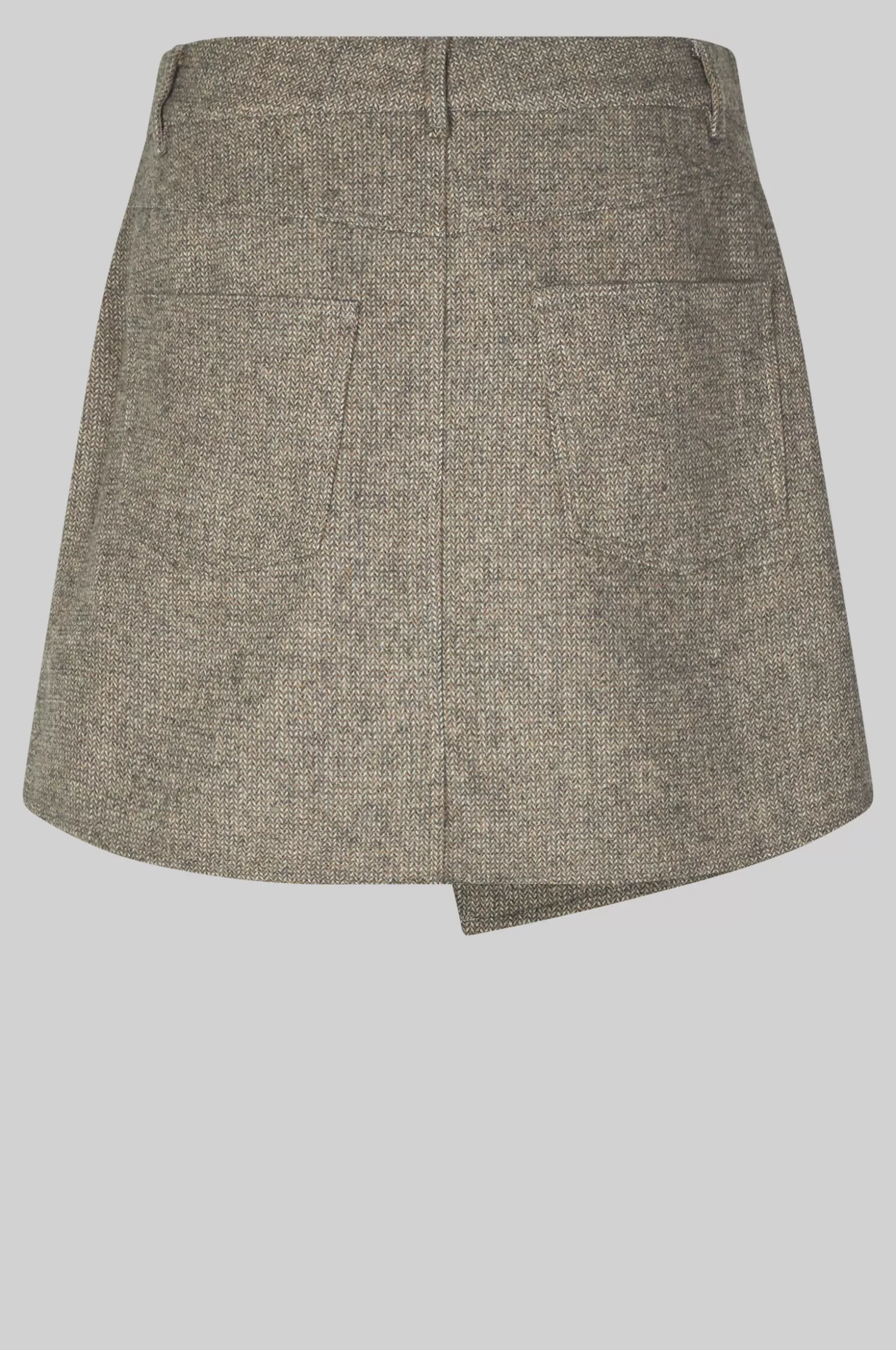 Second Female crossover skirt. Made in a light wool blend with miniature herringbone pattern. Featuring crossover flap a…