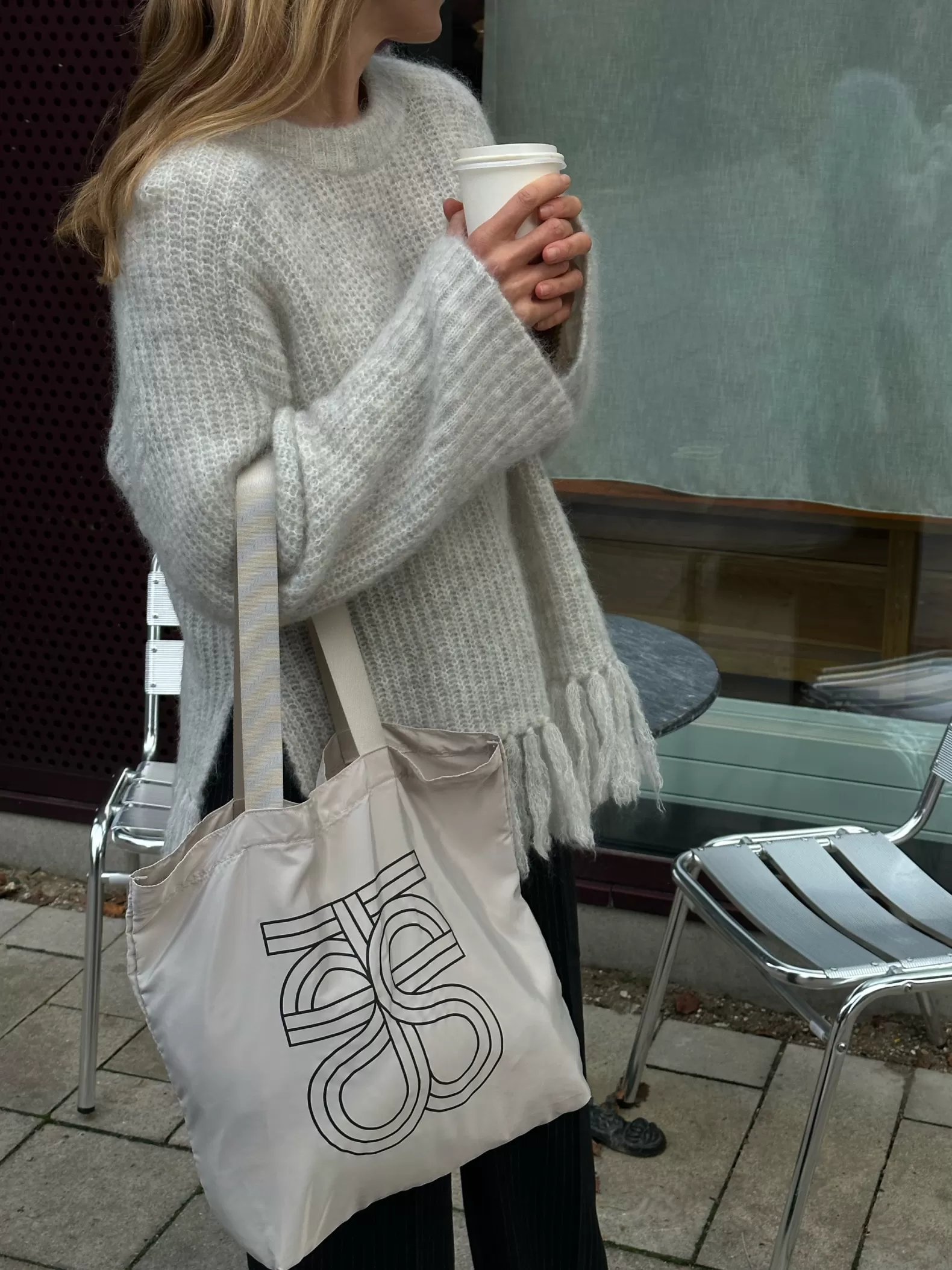 Second Female logo tote bag. Made in light and resilient polyester with webbing shoulder straps. Featuring a large logo print on one side in contrast colour.