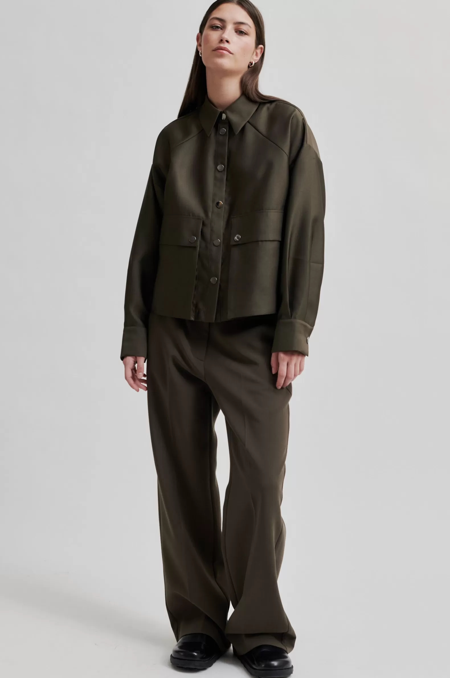 Second Female utility shirt. Made in light, smooth fabric with slight lustrous finish. Featuring a regular collar and pl…