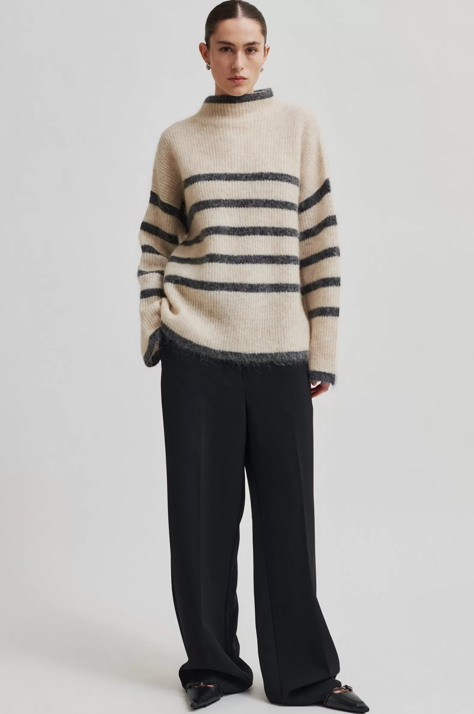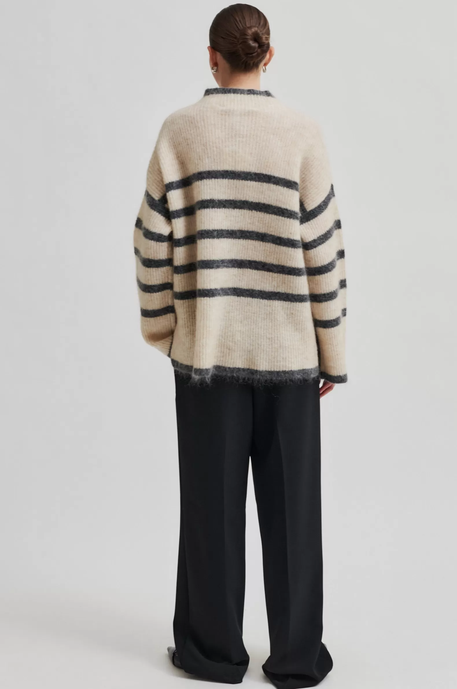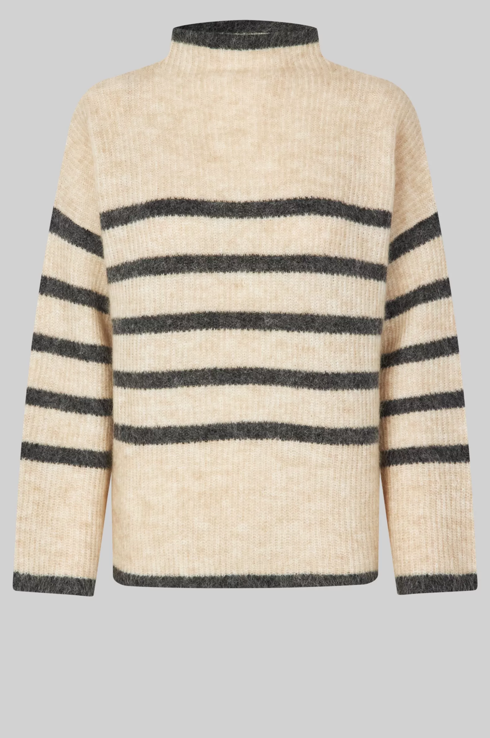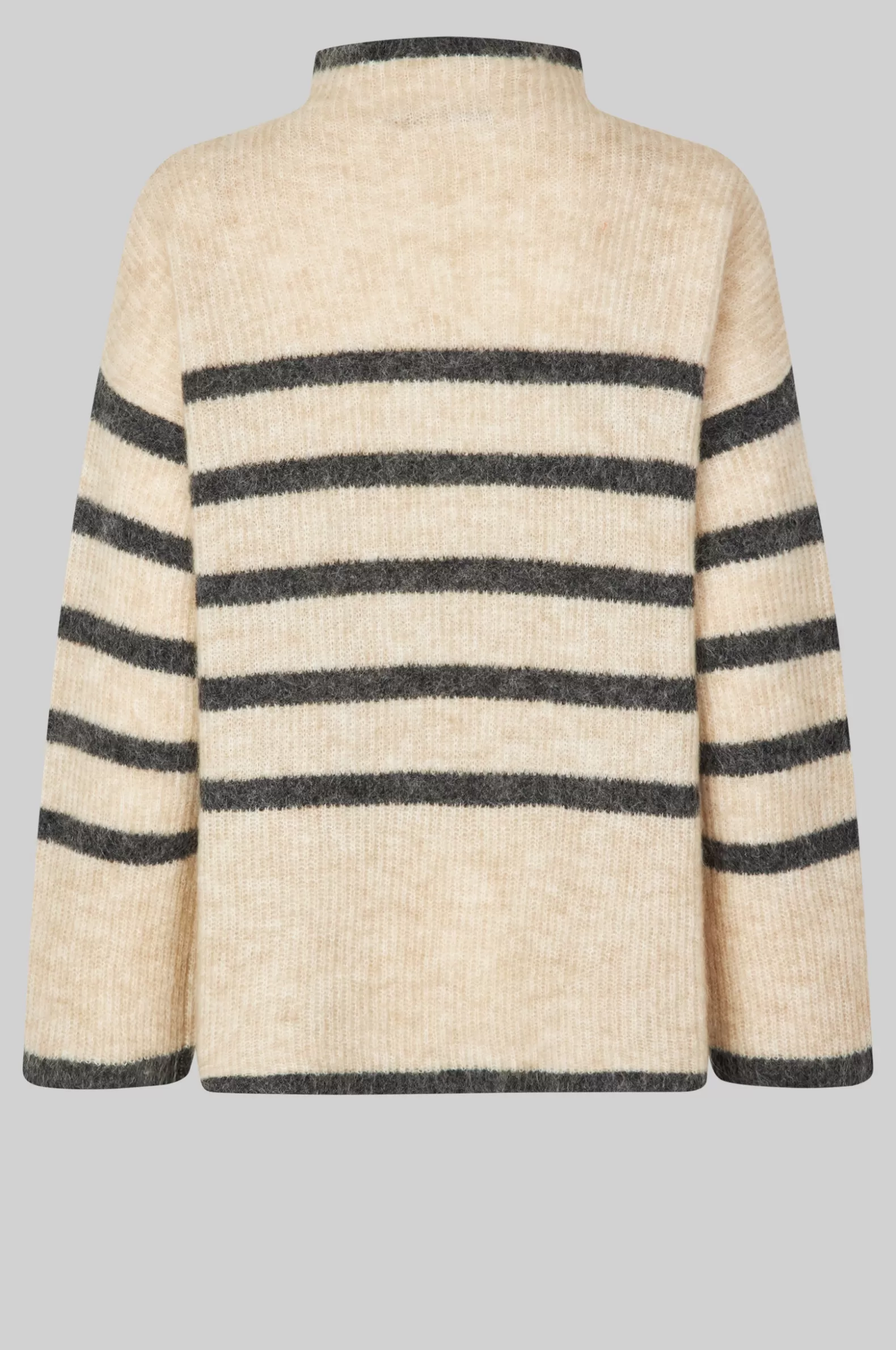 Second Female striped turtleneck pullover. The cardigan is made in soft and lightweight wool-mohair blend with contrast horizontal stripes. Featuring a turtle neck and dropped shoulders with extra long sleeves. Slits at sides. Loose and slouchy fit. Knit with an oversize fitHigh neckShort slitsStriped patternMohair/wool mixPart of our Sustainable Choice