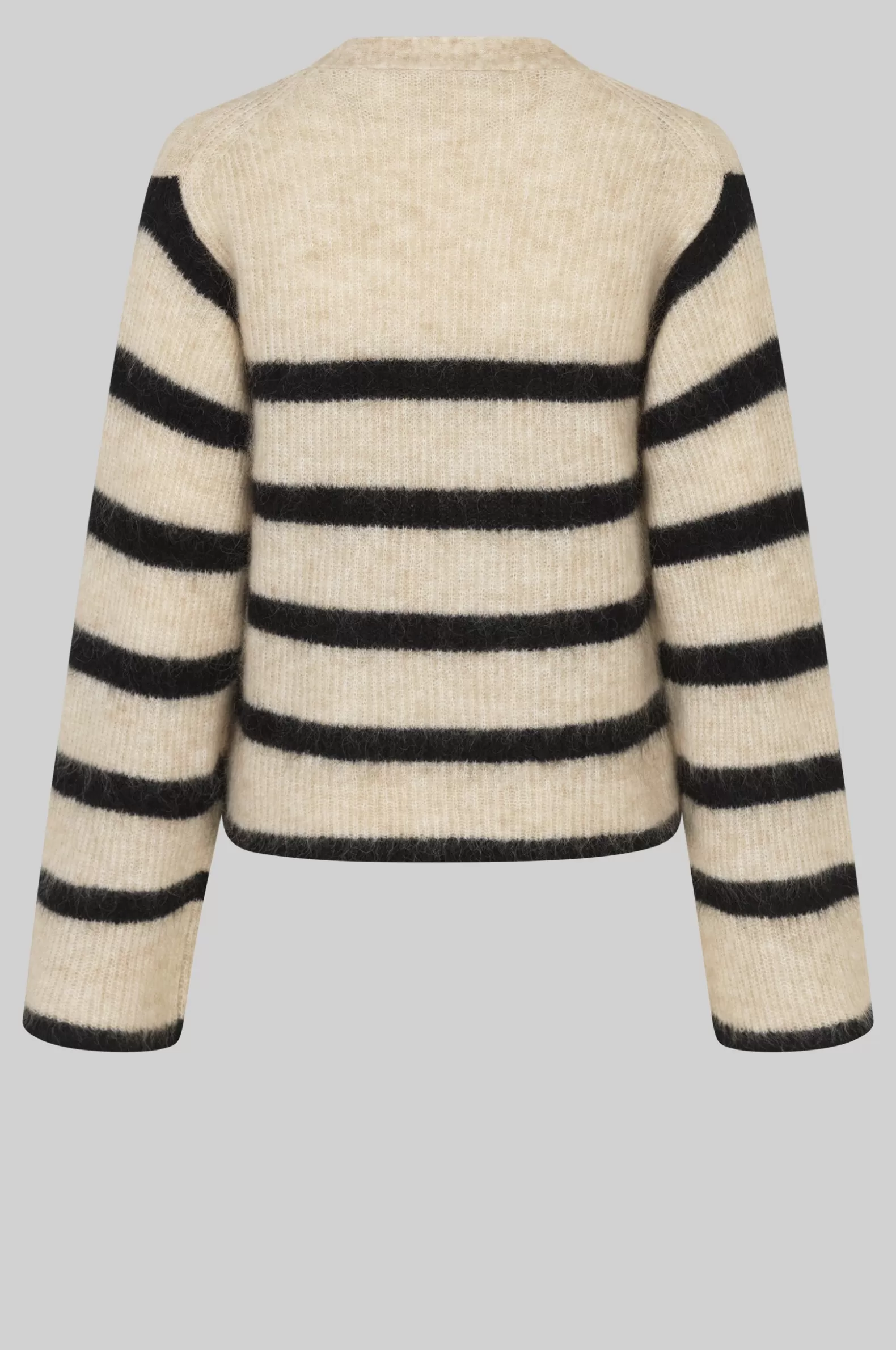 Second Female striped cardigan. Made in soft and lightweight wool-mohair blend with contrast horizontal stripes. Featuri…