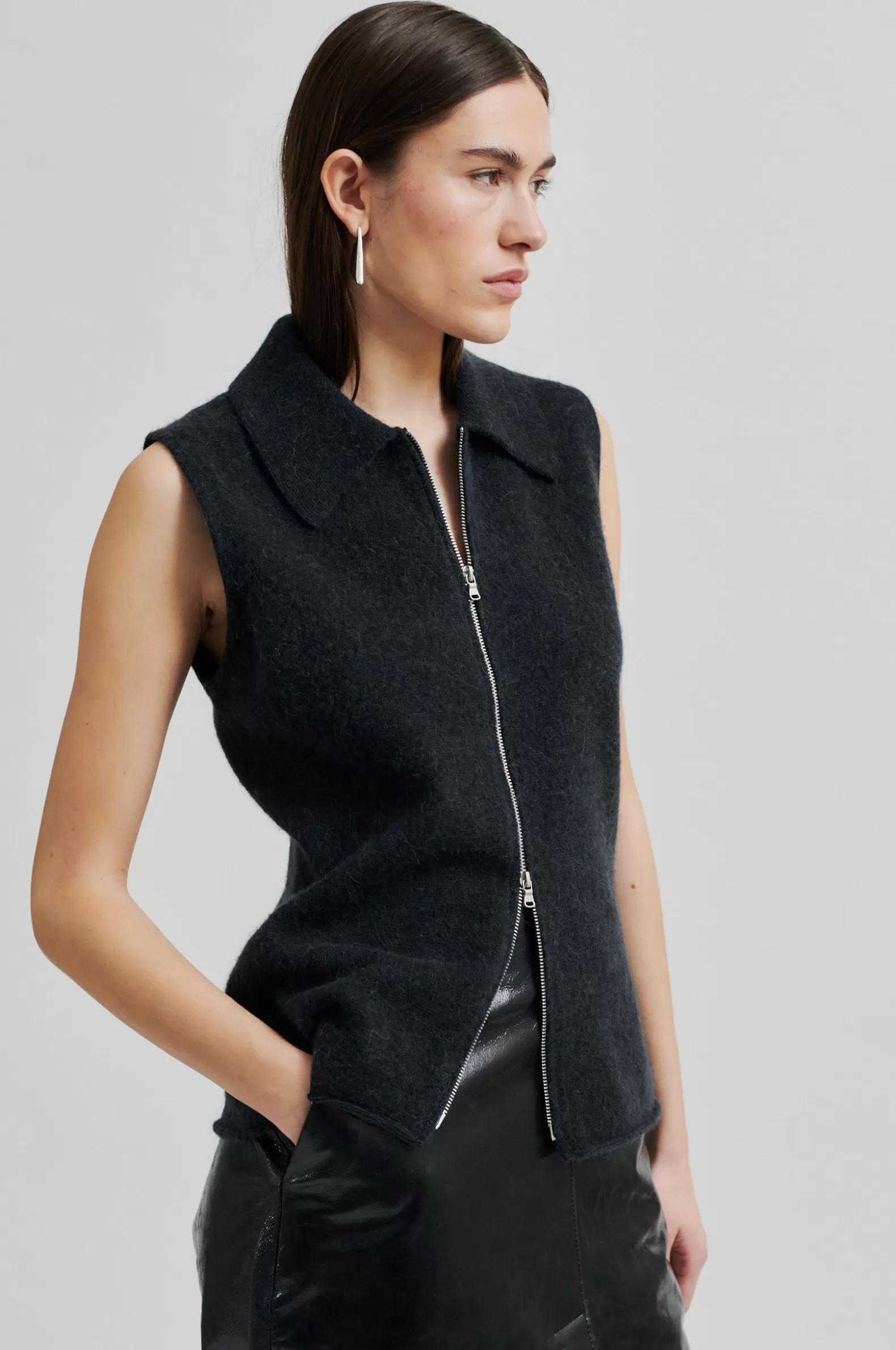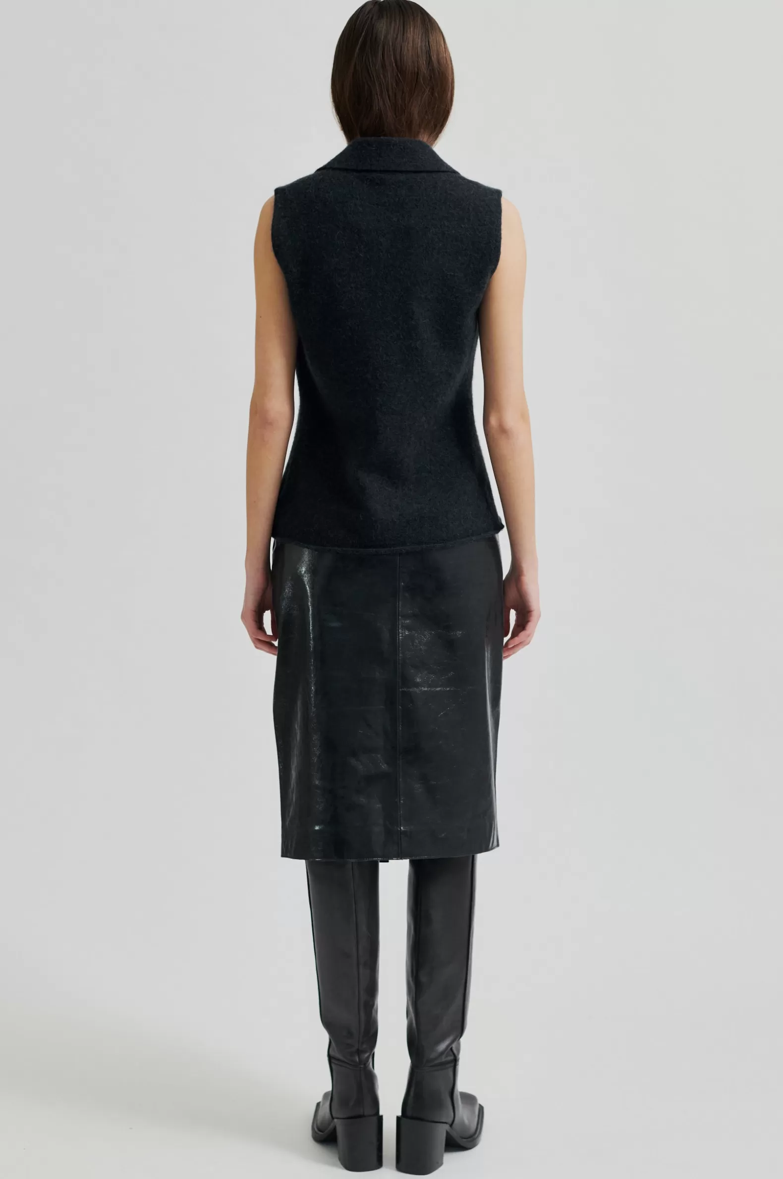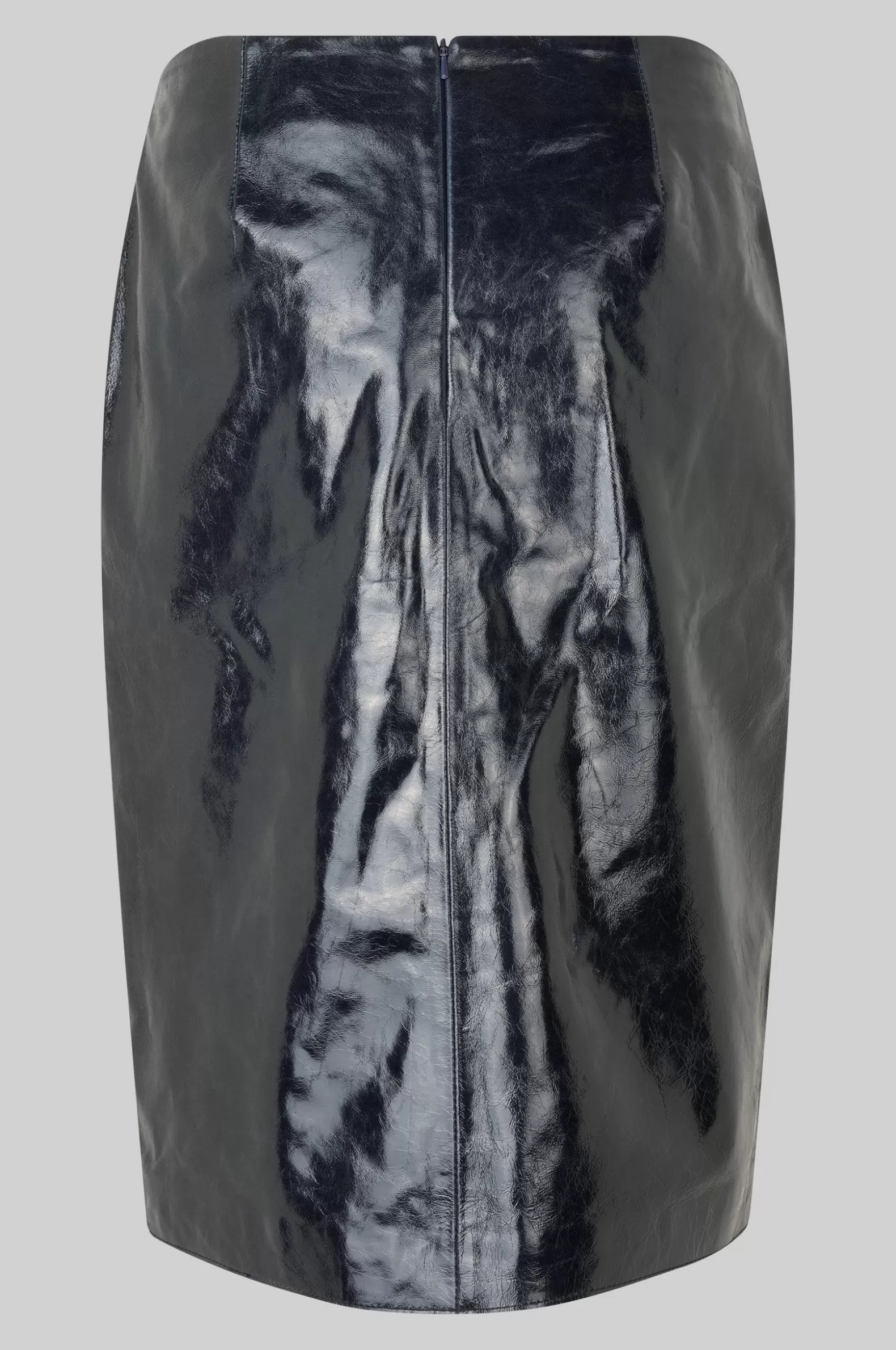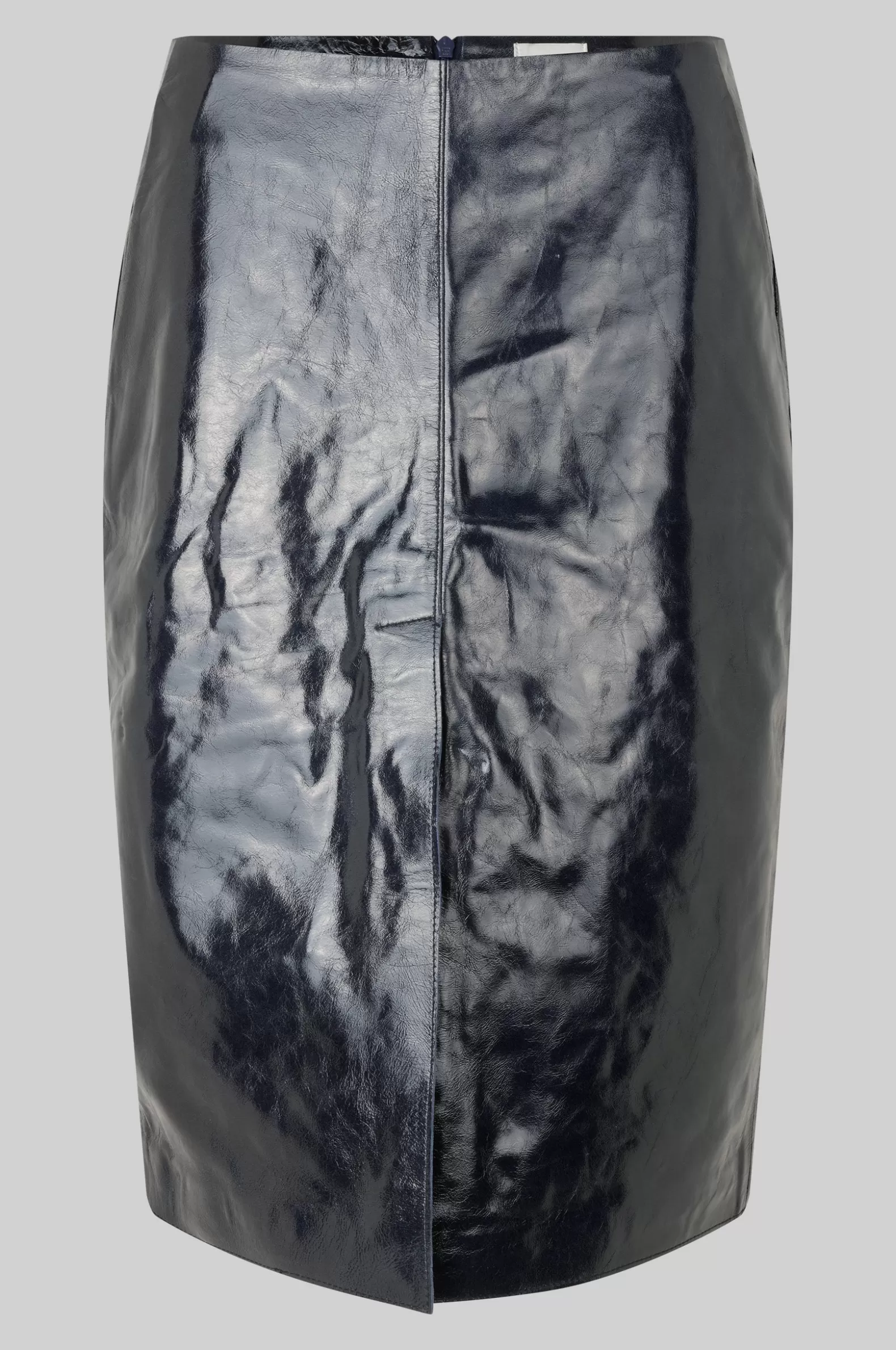 Second Female leather skirt. The skirt is made in smooth leather with a lustrous quality. Featuring a zip fastening at the back and two lined pockets. Slit at the front. Slim, straight fit.
