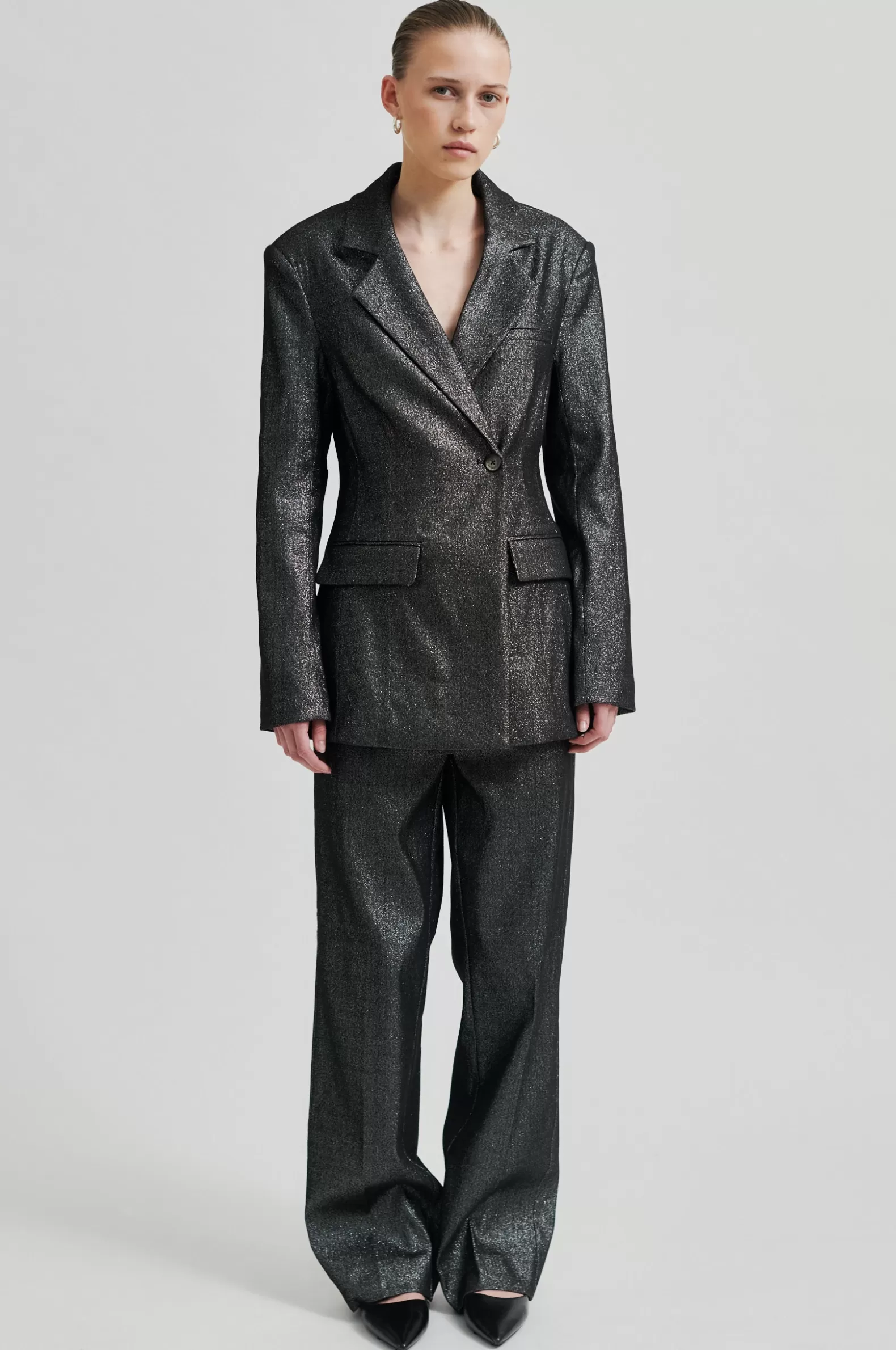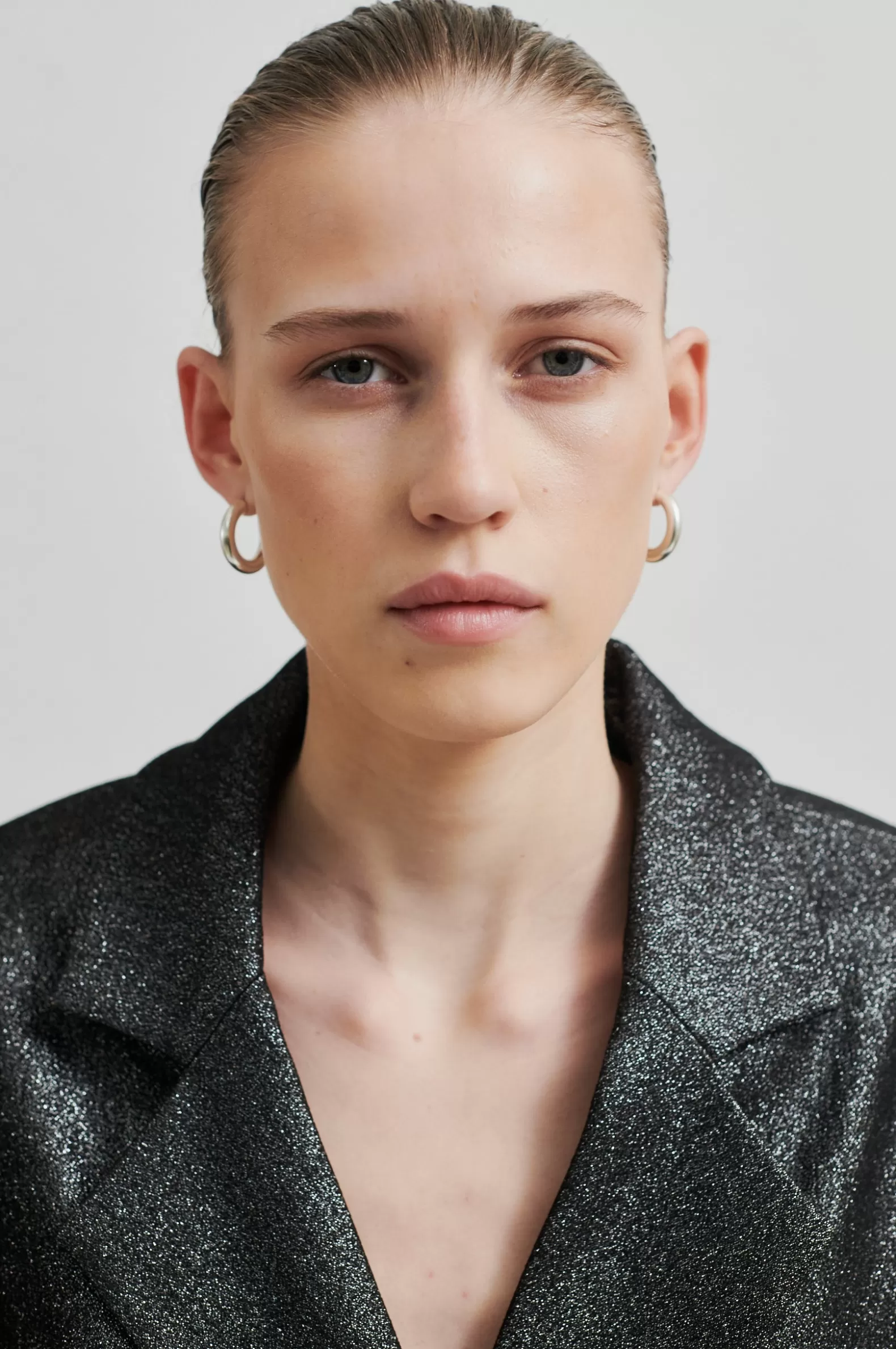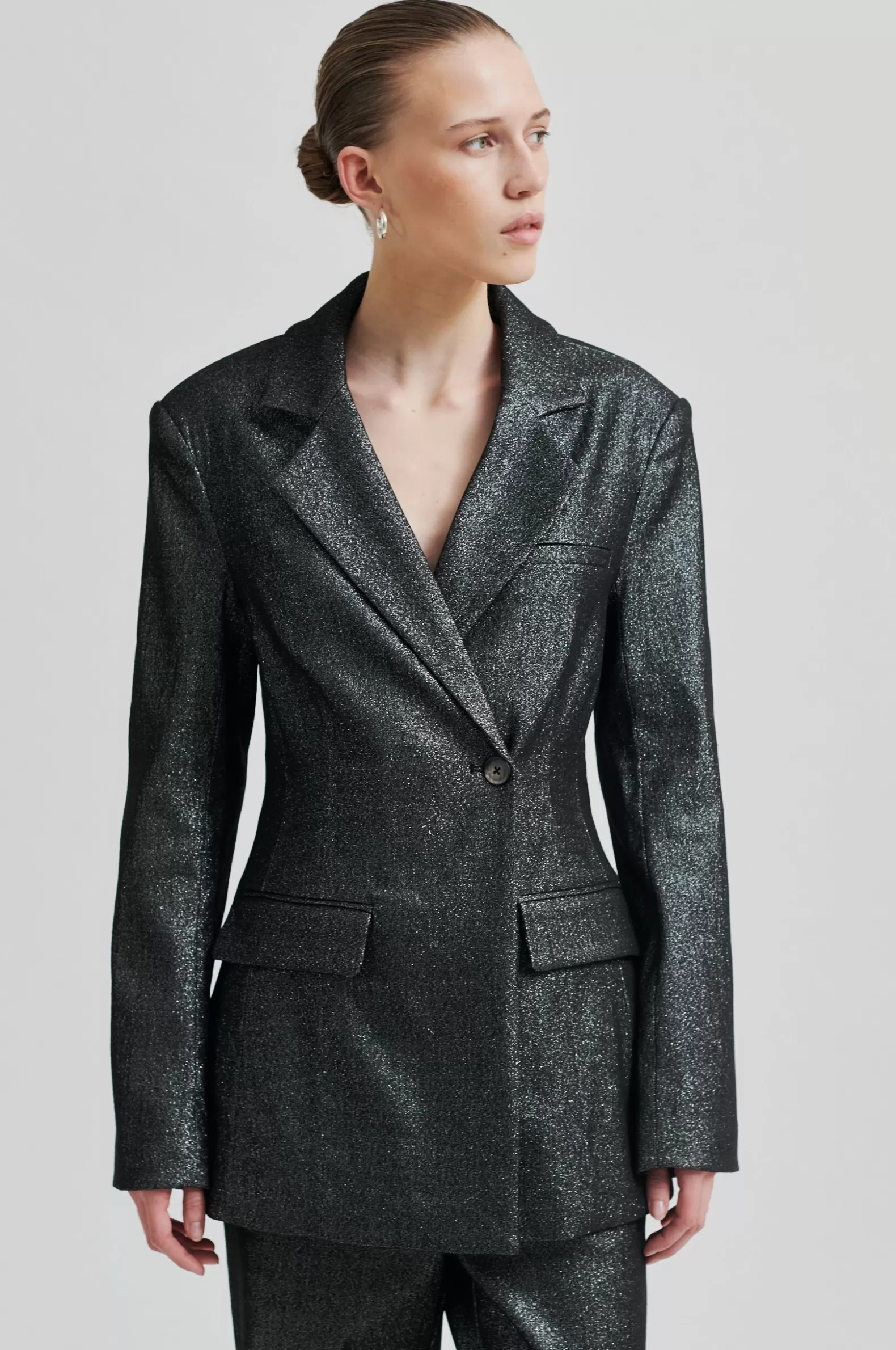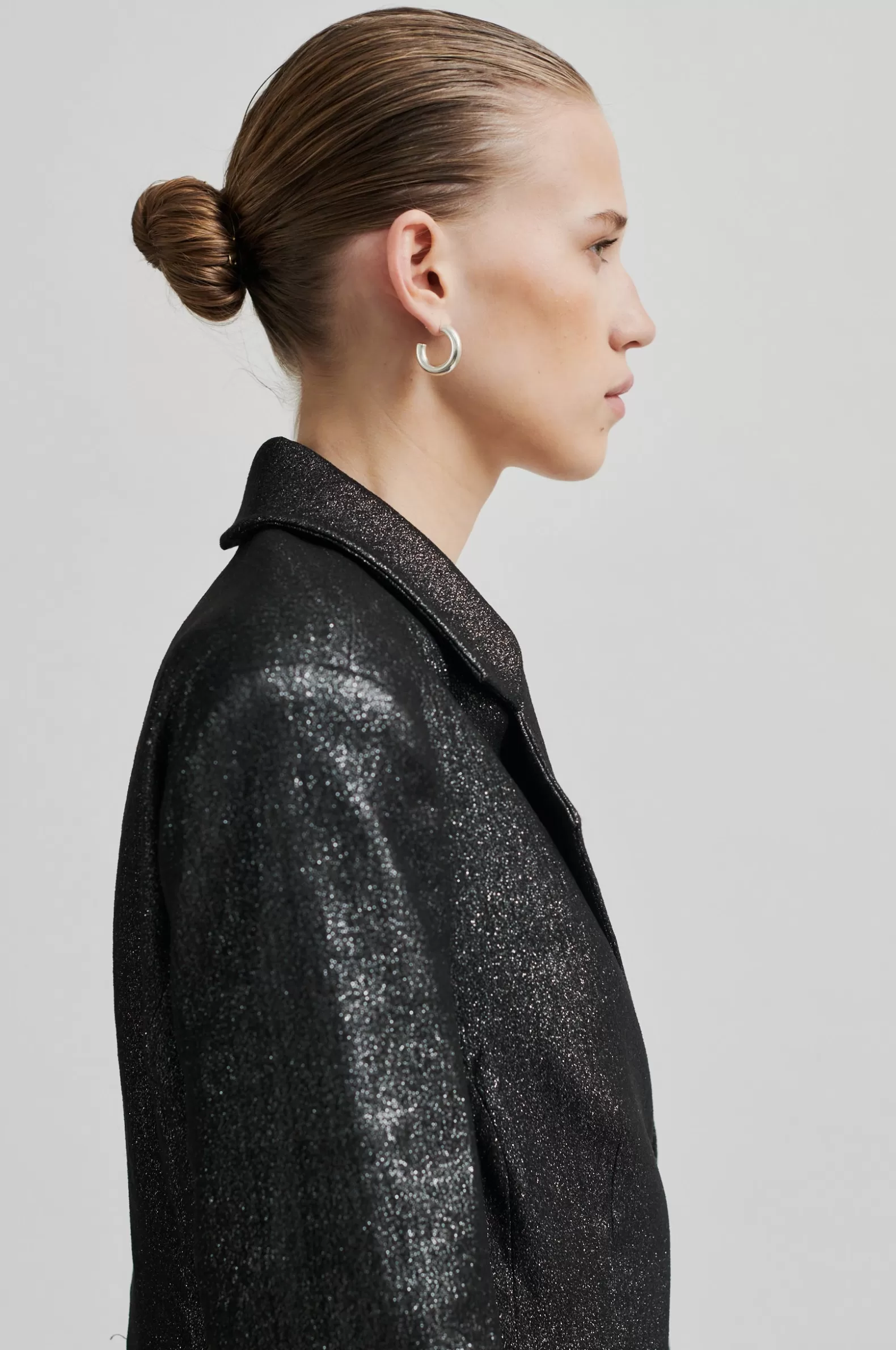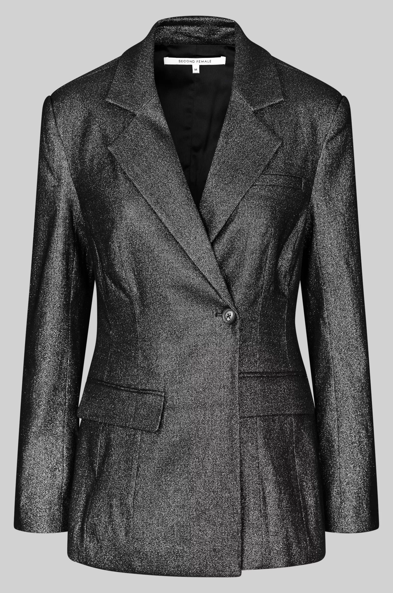 Second Female glittery blazer. The blazer is made in a glittery viscose blend with a stretchy quality. Featuring a notch…