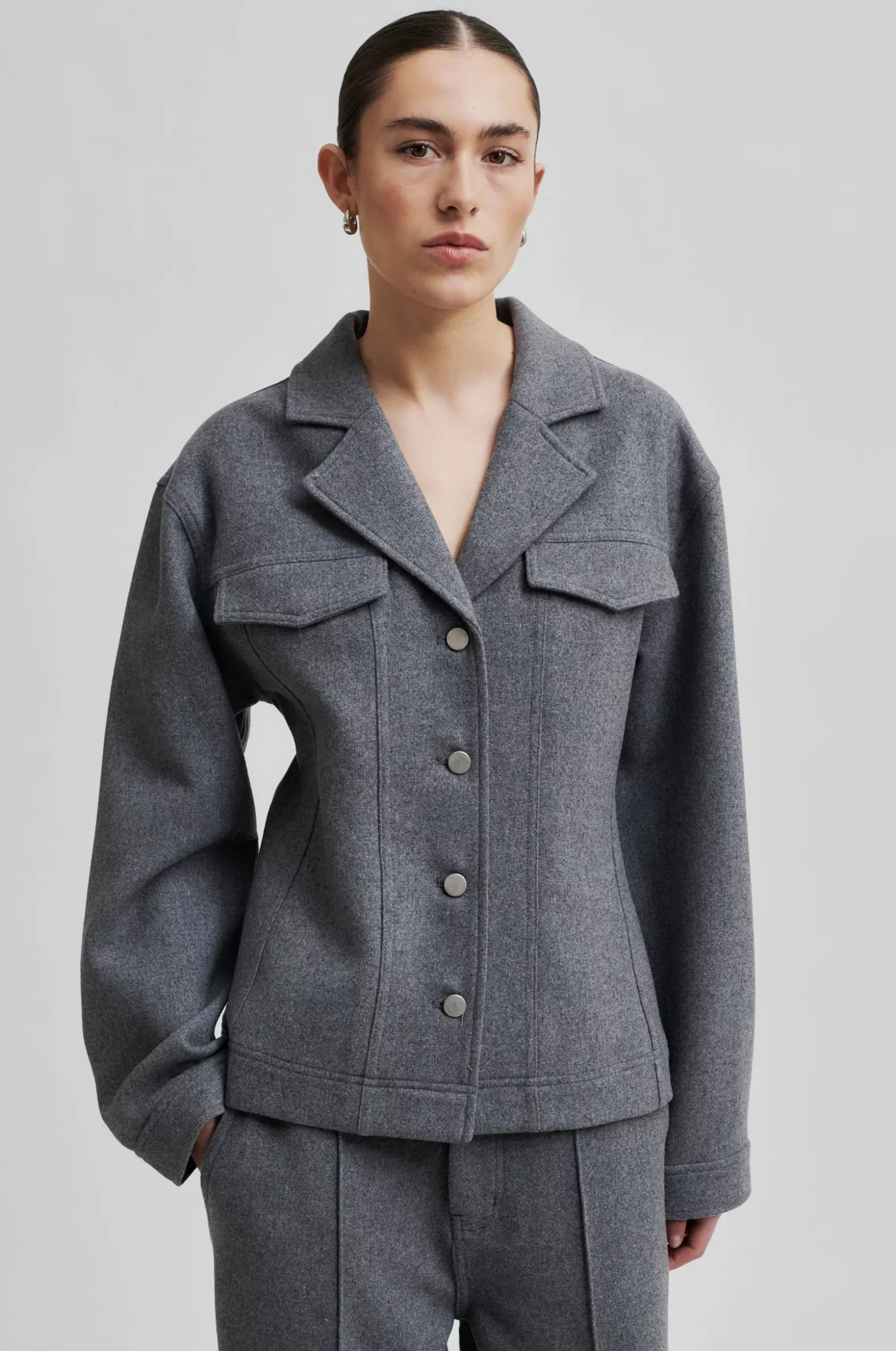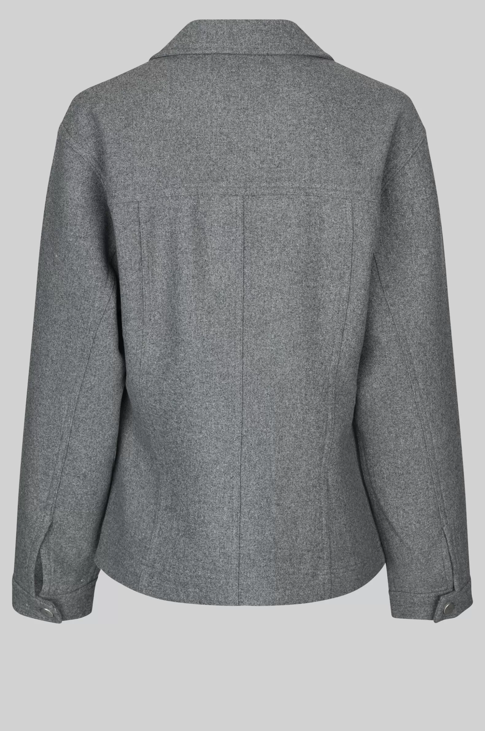 Second Female melange shirt. Made in mid-weight wool melange fabric blend. Featuring a notch lapel and button-through fa…