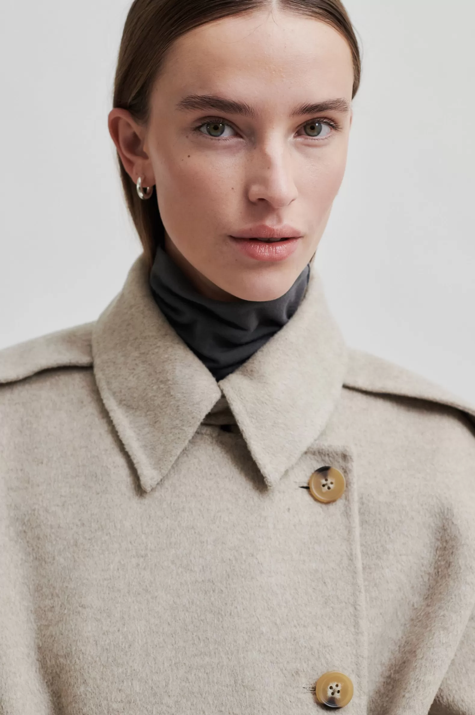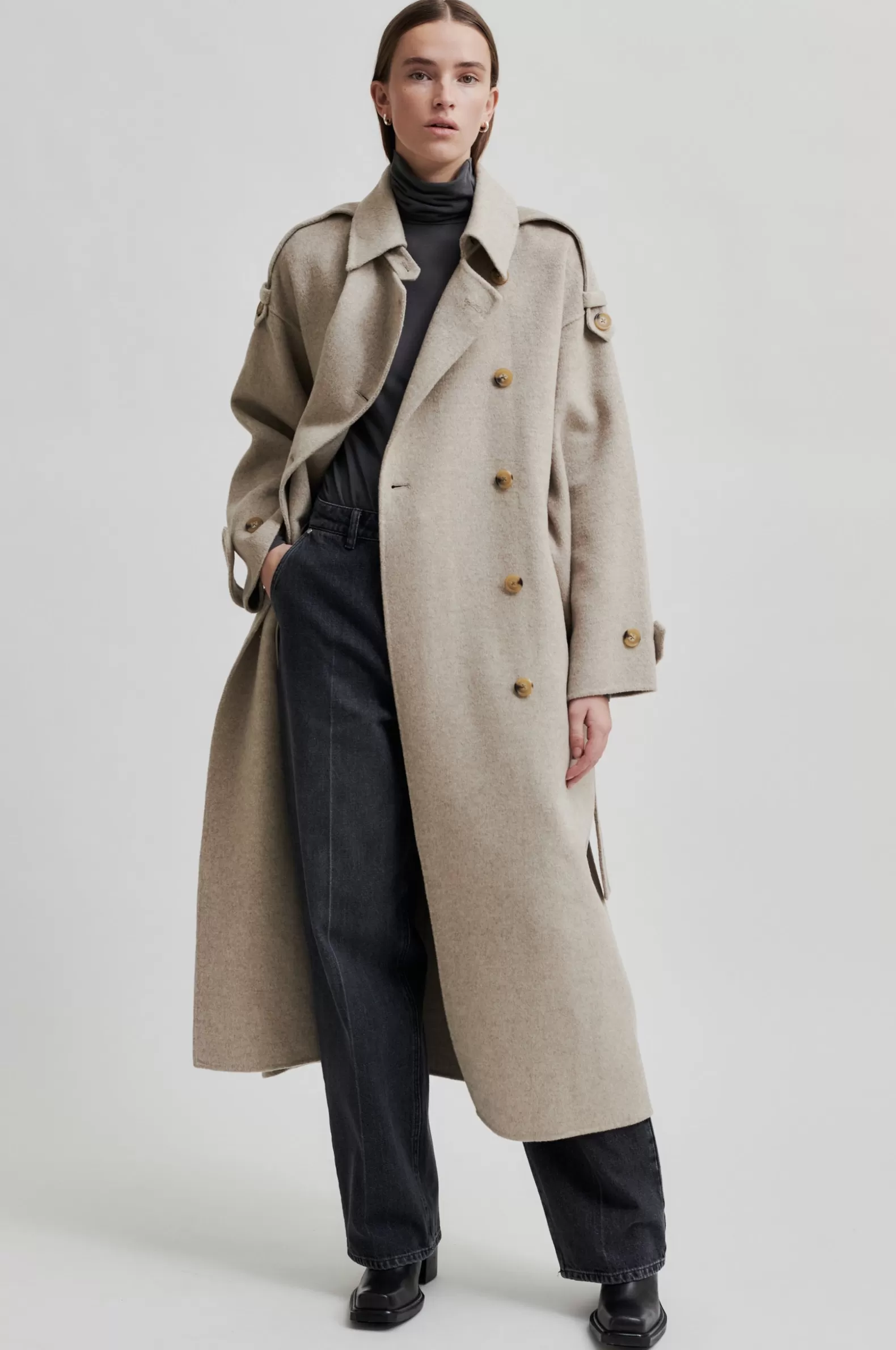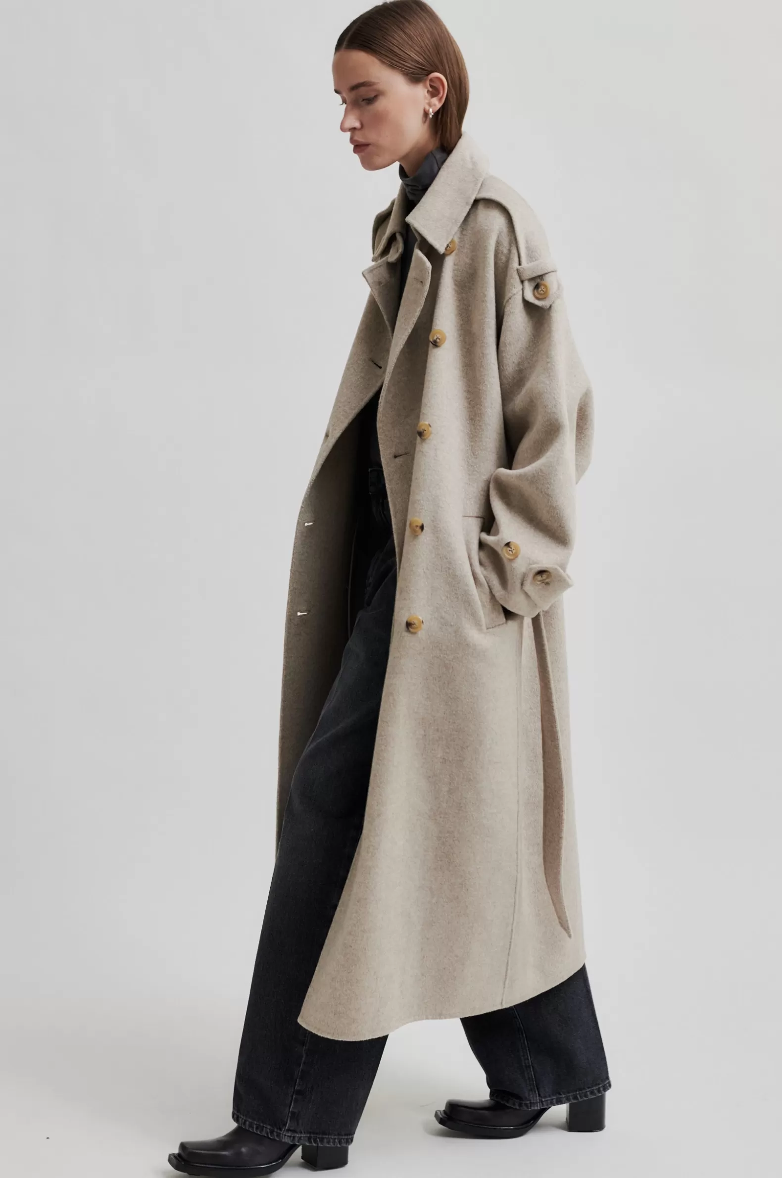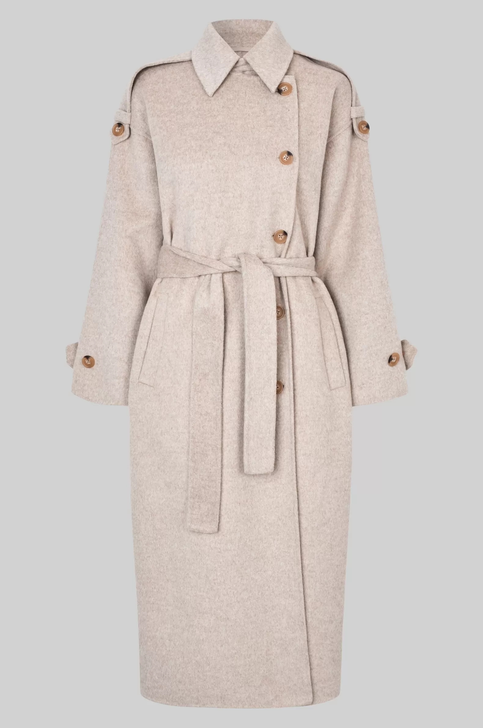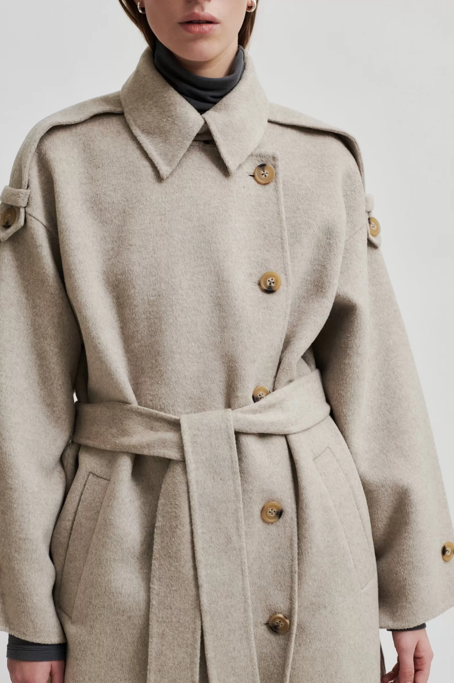Second Female belted coat. Made in a soft and slightly textured wool blend. Featuring a regular collar with asymmetric b…